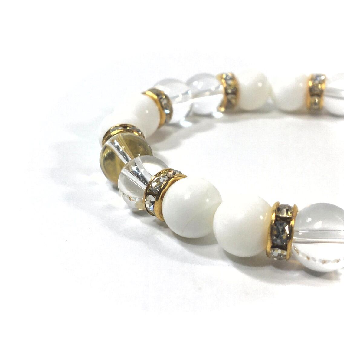 水晶&ホワイトオニキス パワーストーン ブレスレット 天然石 8mm(ゴールド)レディース 女性 数珠ブレス 開運 プレゼント ギフト