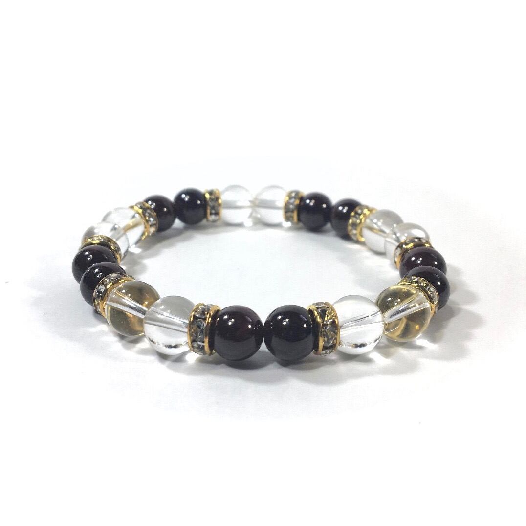 水晶&ガーネット パワーストーン ブレスレット 天然石 8mm(ゴールド)レディース 女性 数珠ブレス 開運 プレゼント ギフト