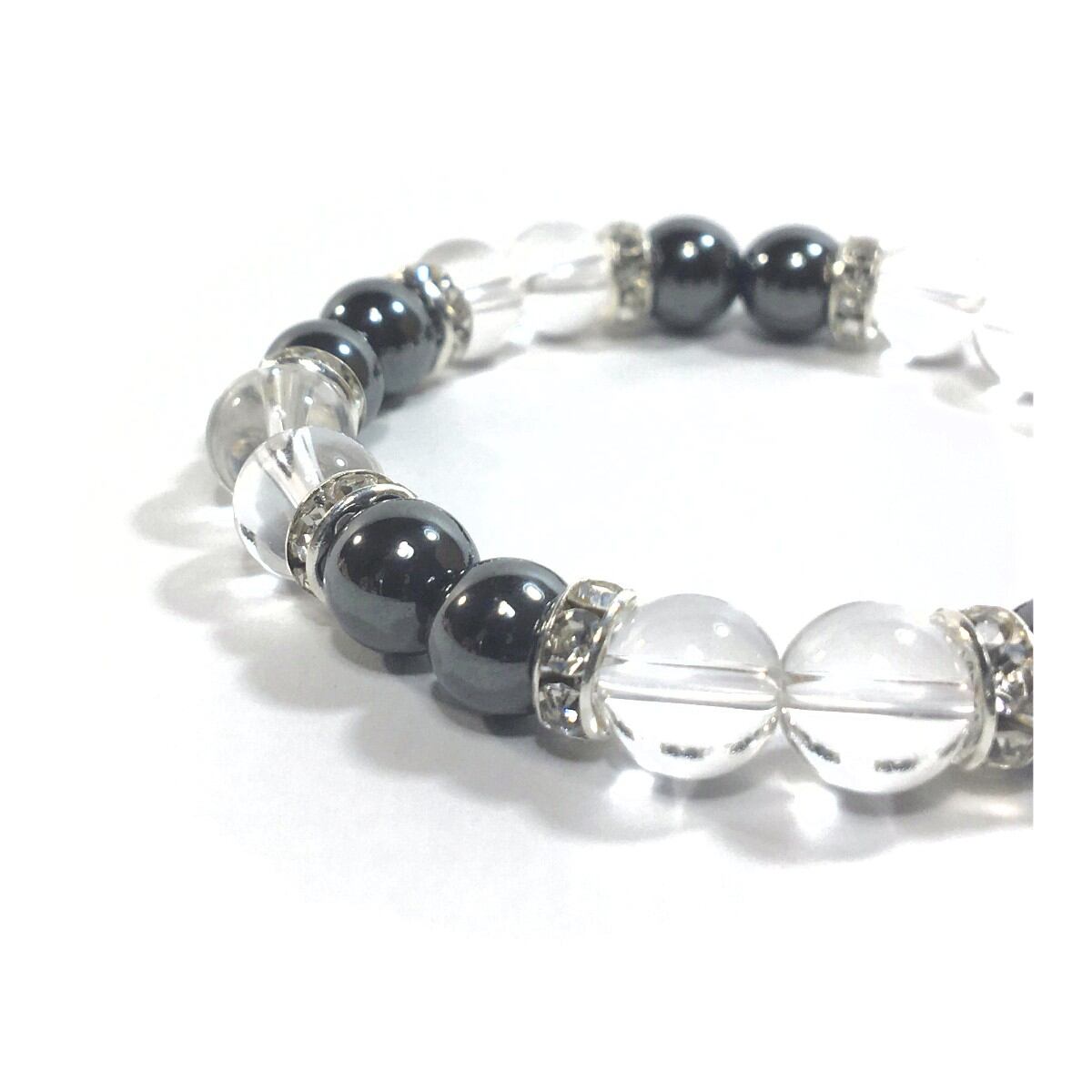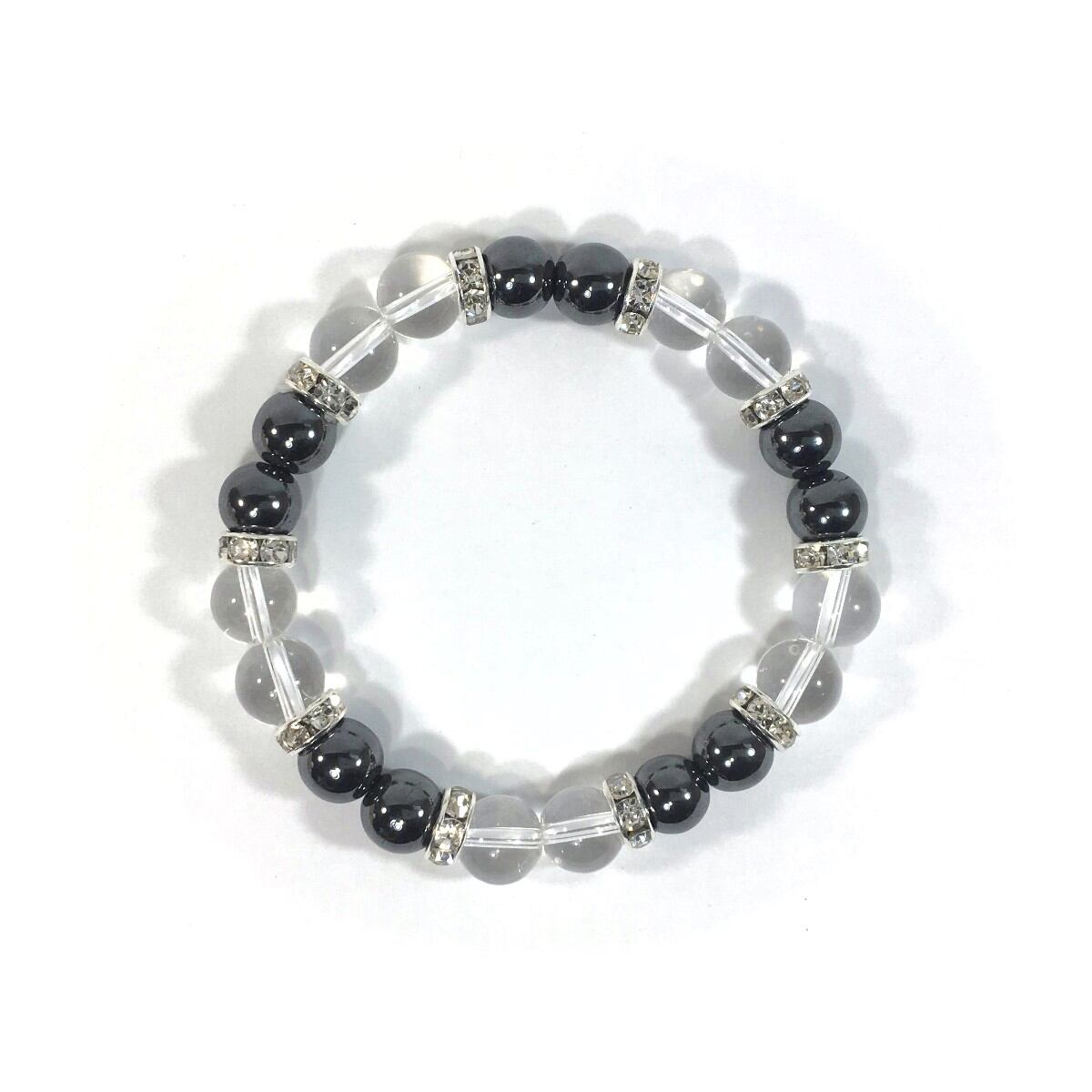 水晶&ヘマタイト パワーストーン ブレスレット 天然石 8mm(シルバー)レディース 女性 数珠ブレス 開運 プレゼント ギフト