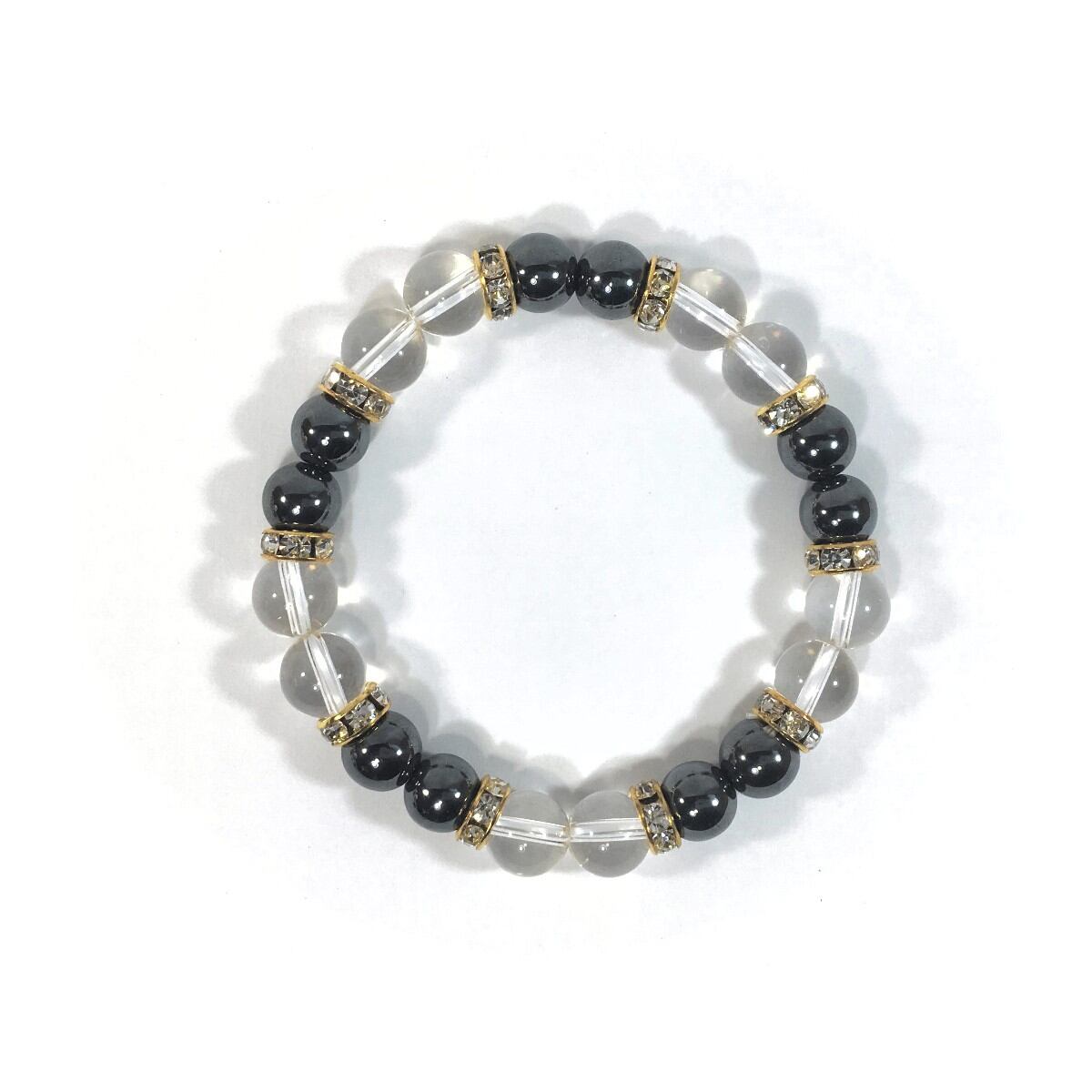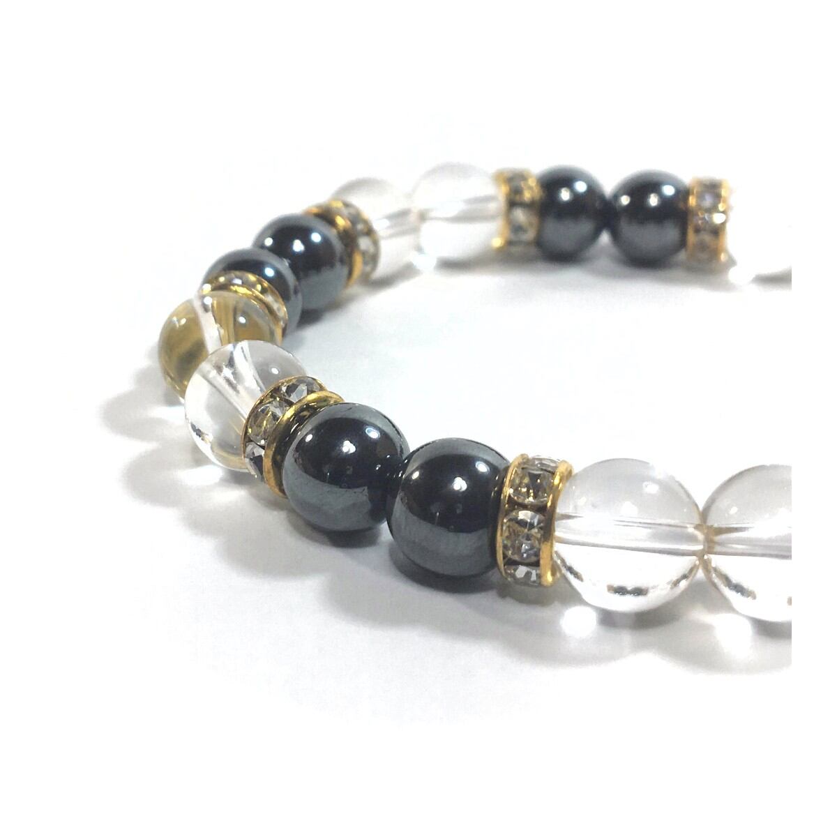 水晶&ヘマタイト パワーストーン ブレスレット 天然石 8mm(ゴールド)レディース 女性 数珠ブレス 開運 プレゼント ギフト