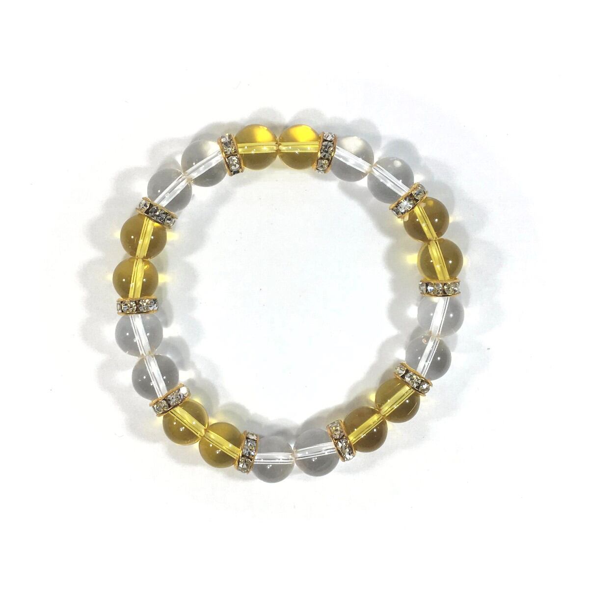 水晶&シトリン パワーストーン ブレスレット 天然石ブレスレット 8mm(ゴールド)レディース 女性 数珠ブレス 開運 プレゼント ギフト