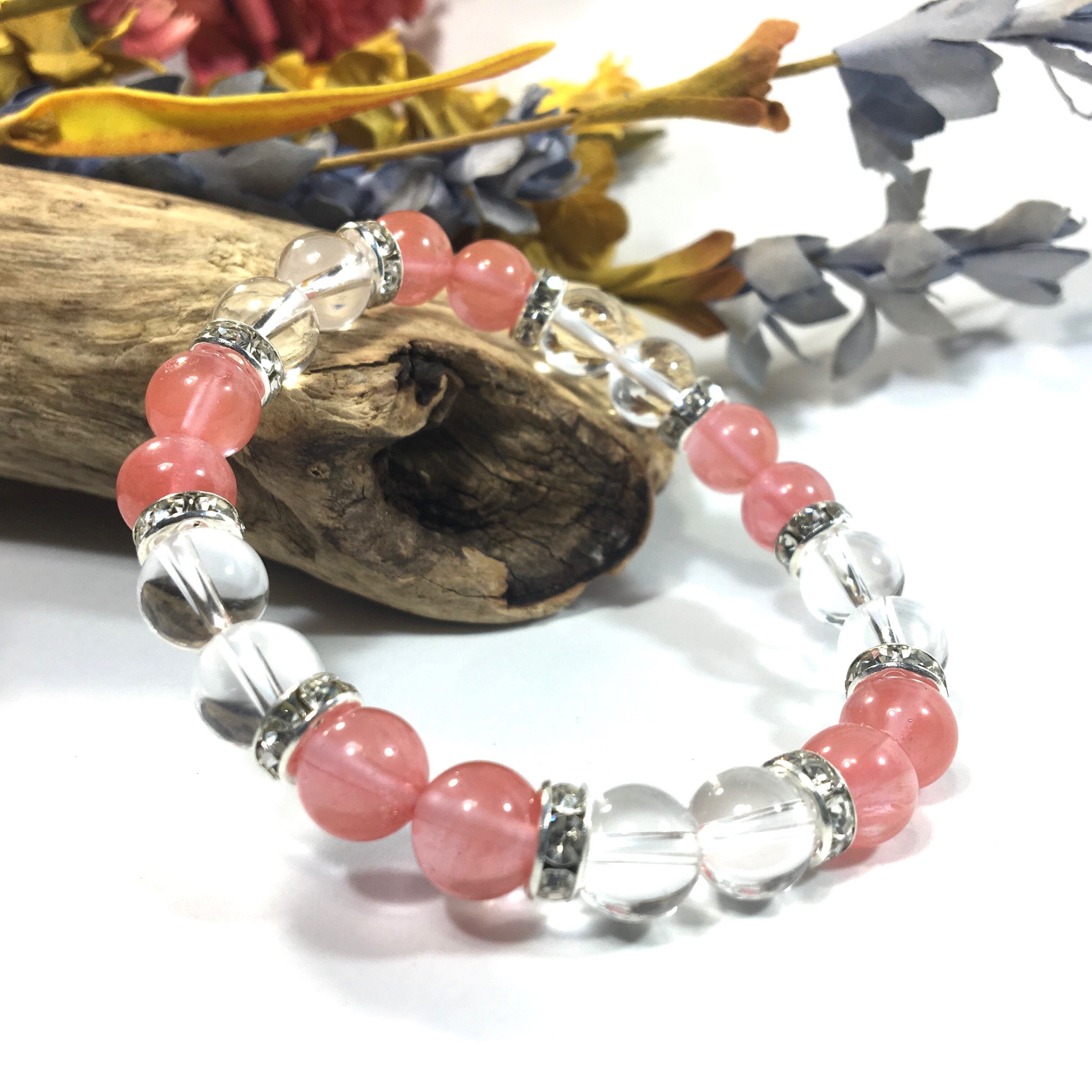 水晶&チェリークォーツ パワーストーン ブレスレット 天然石ブレスレット 8mm(シルバー)レディース 女性 数珠ブレス 開運 プレゼント ギフト