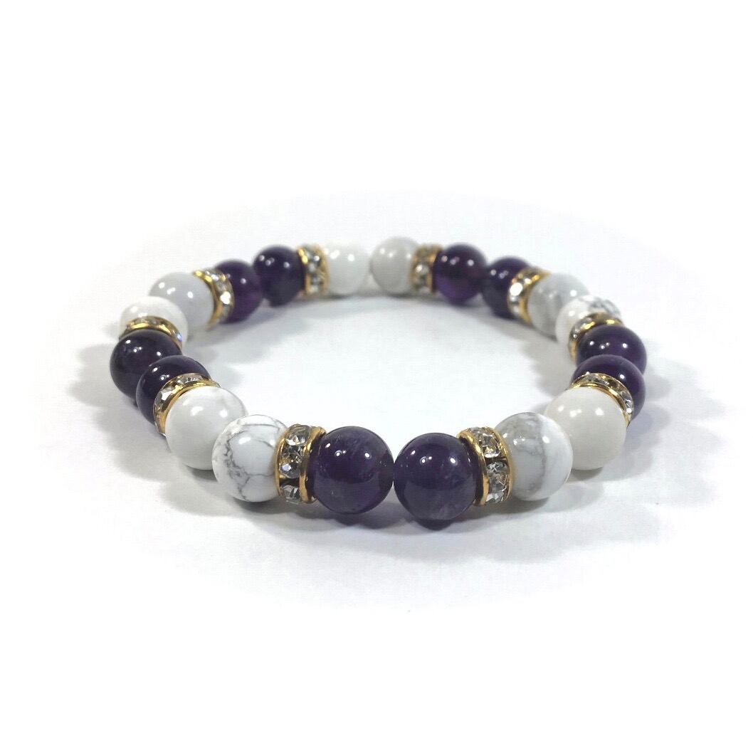 ハウライト&アメジスト パワーストーン ブレスレット 天然石ブレス 8mm(ゴールド)レディース 女性 数珠ブレス 開運 プレゼント ギフト