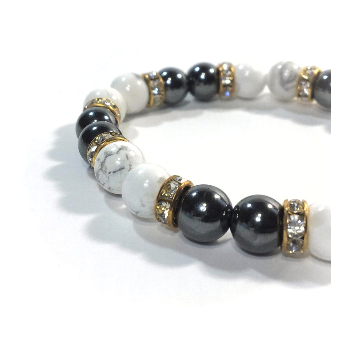 ハウライト&ヘマタイト パワーストーン ブレスレット 天然石 8mm(ゴールド)レディース 女性 数珠ブレス 開運 プレゼント ギフト