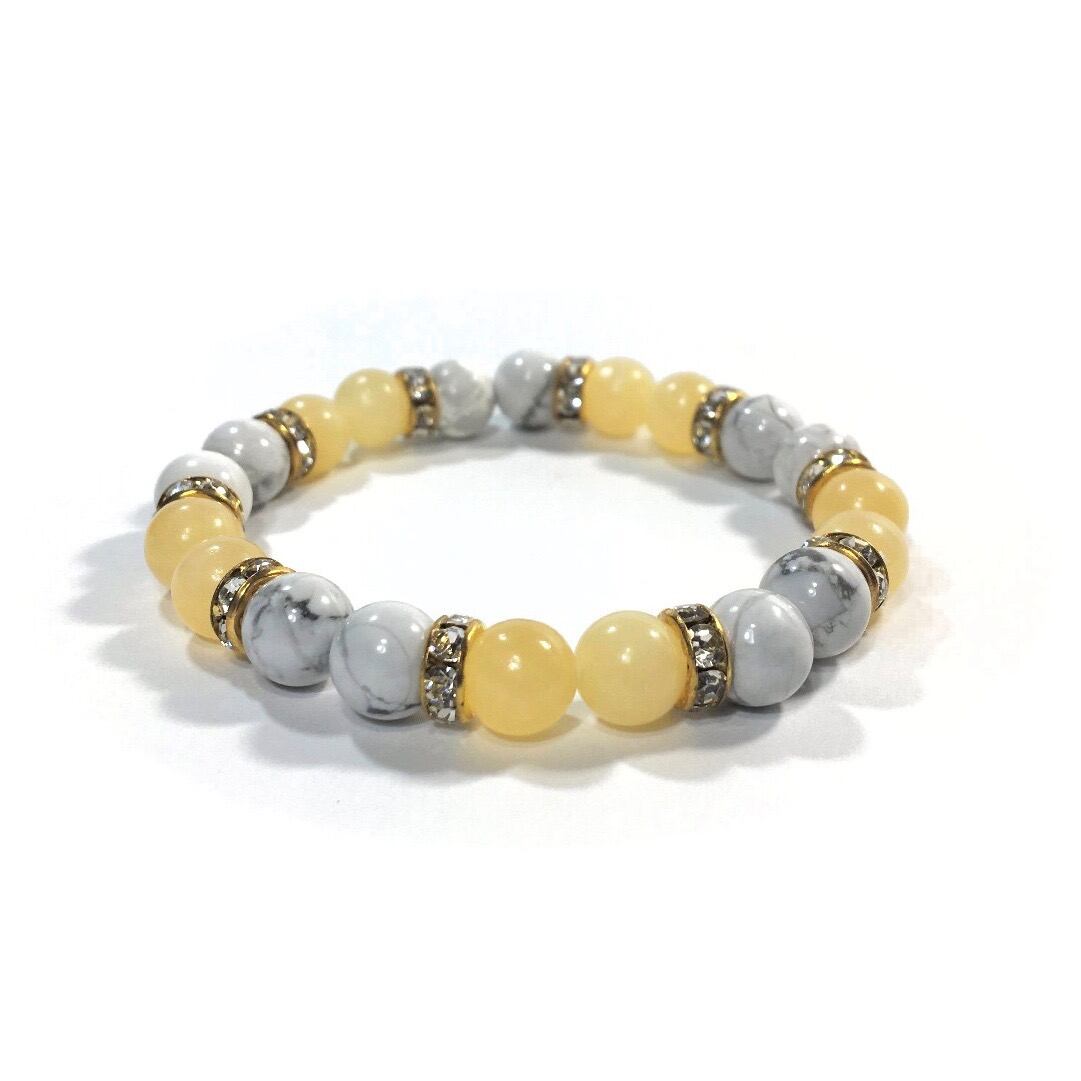 ハウライト&アラゴナイト パワーストーン ブレスレット 天然石 8mm(ゴールド)レディース 女性 数珠ブレス 開運 プレゼント ギフト