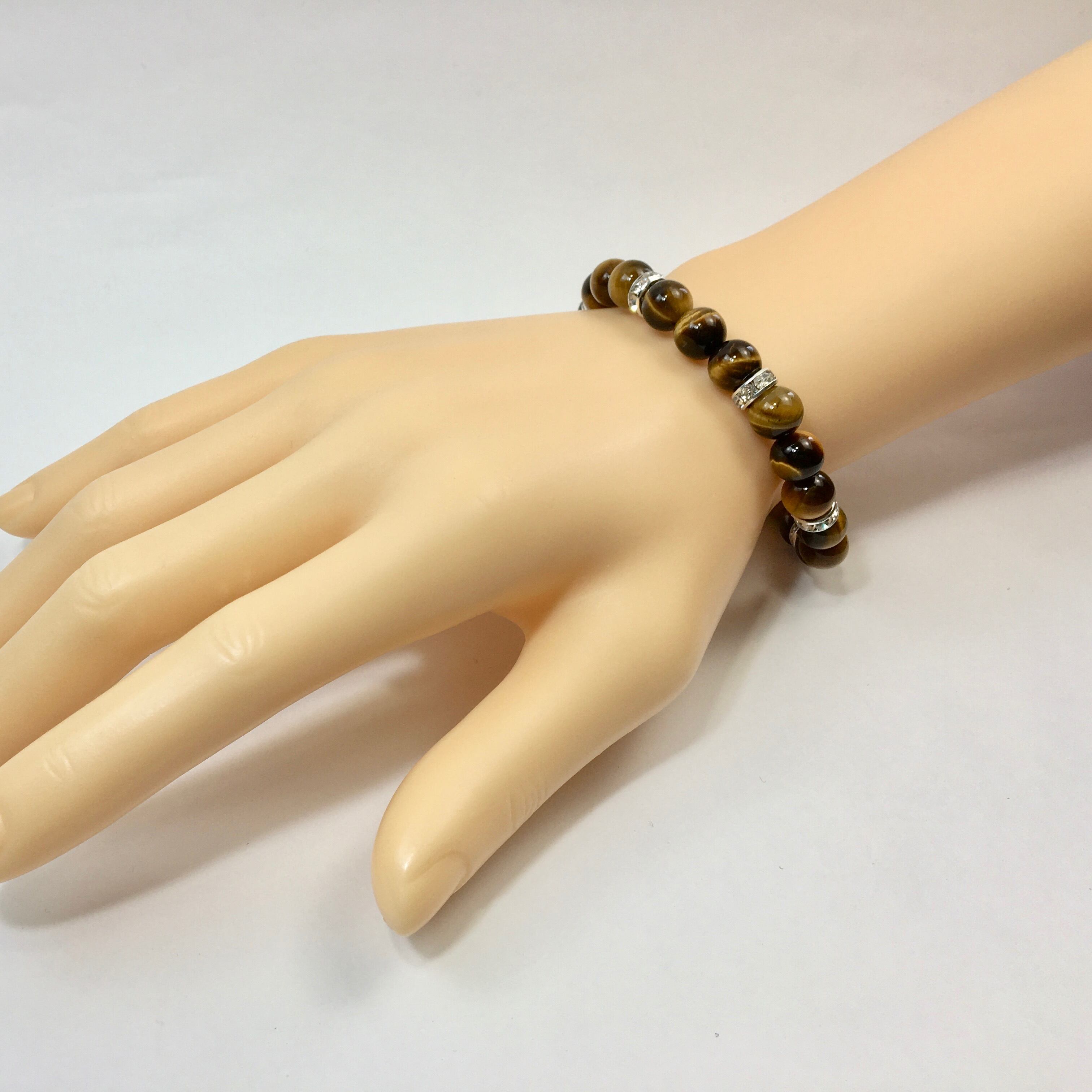 こちらは、8mm玉のタイガーアイを使ったパワーストーンブレスレットです。シンプルなデザインでどんなコーディネートにも合わせやすいデザインに仕上げています。サイズは内周約15cmです。気になる方は是非この機会にどうぞ。