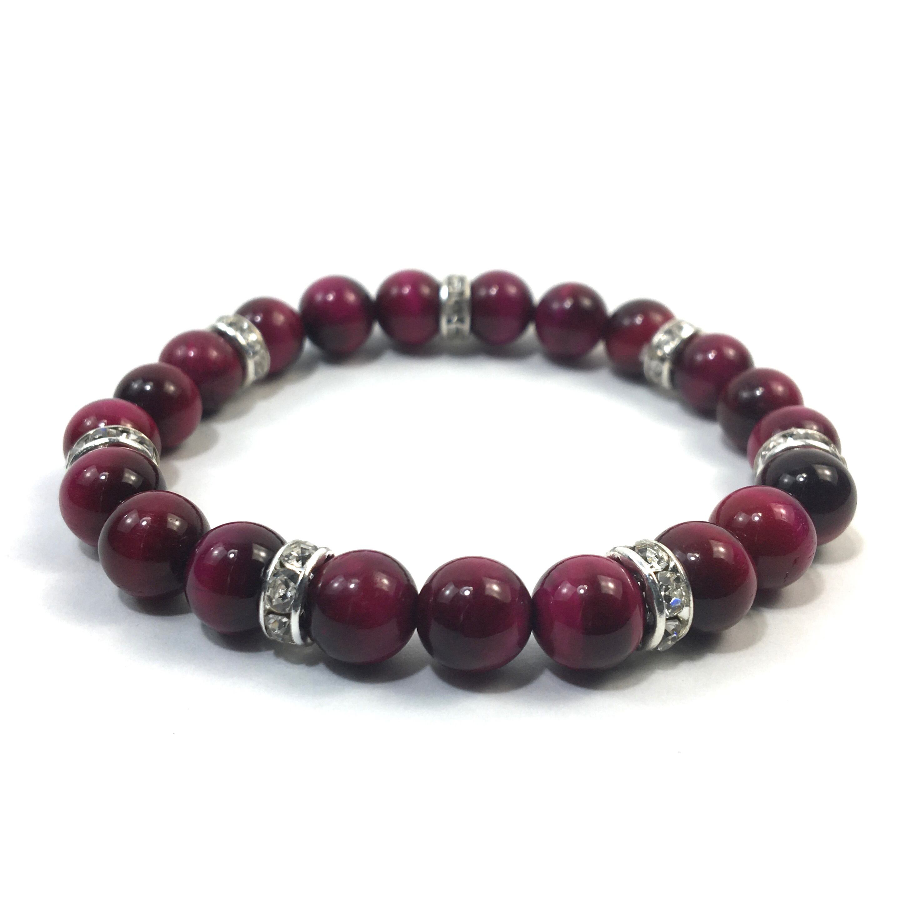 こちらは、8mm玉のピンクタイガーアイを使ったパワーストーンブレスレットです。シンプルなデザインでどんなコーディネートにも合わせやすいデザインに仕上げています。サイズは内周約15cmです。気になる方は是非この機会にどうぞ。