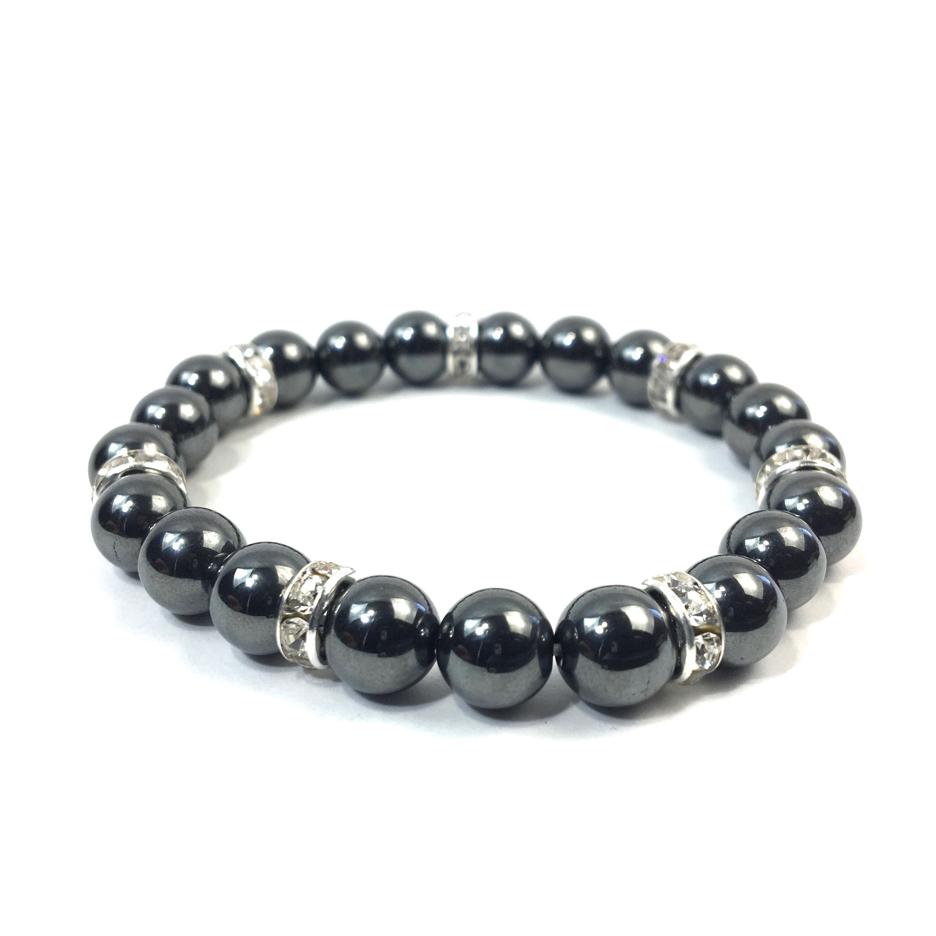 こちらは、8mm玉のヘマタイトを使ったパワーストーンブレスレットです。シンプルなデザインでどんなコーディネートにも合わせやすいデザインに仕上げています。サイズは内周約15cmです。気になる方は是非この機会にどうぞ。