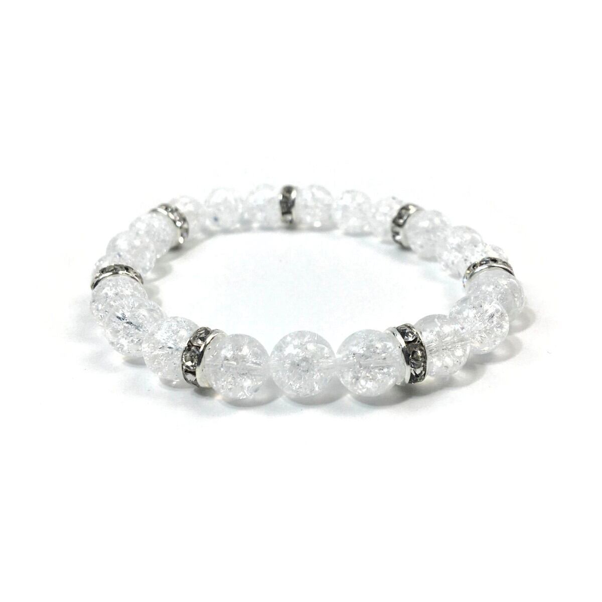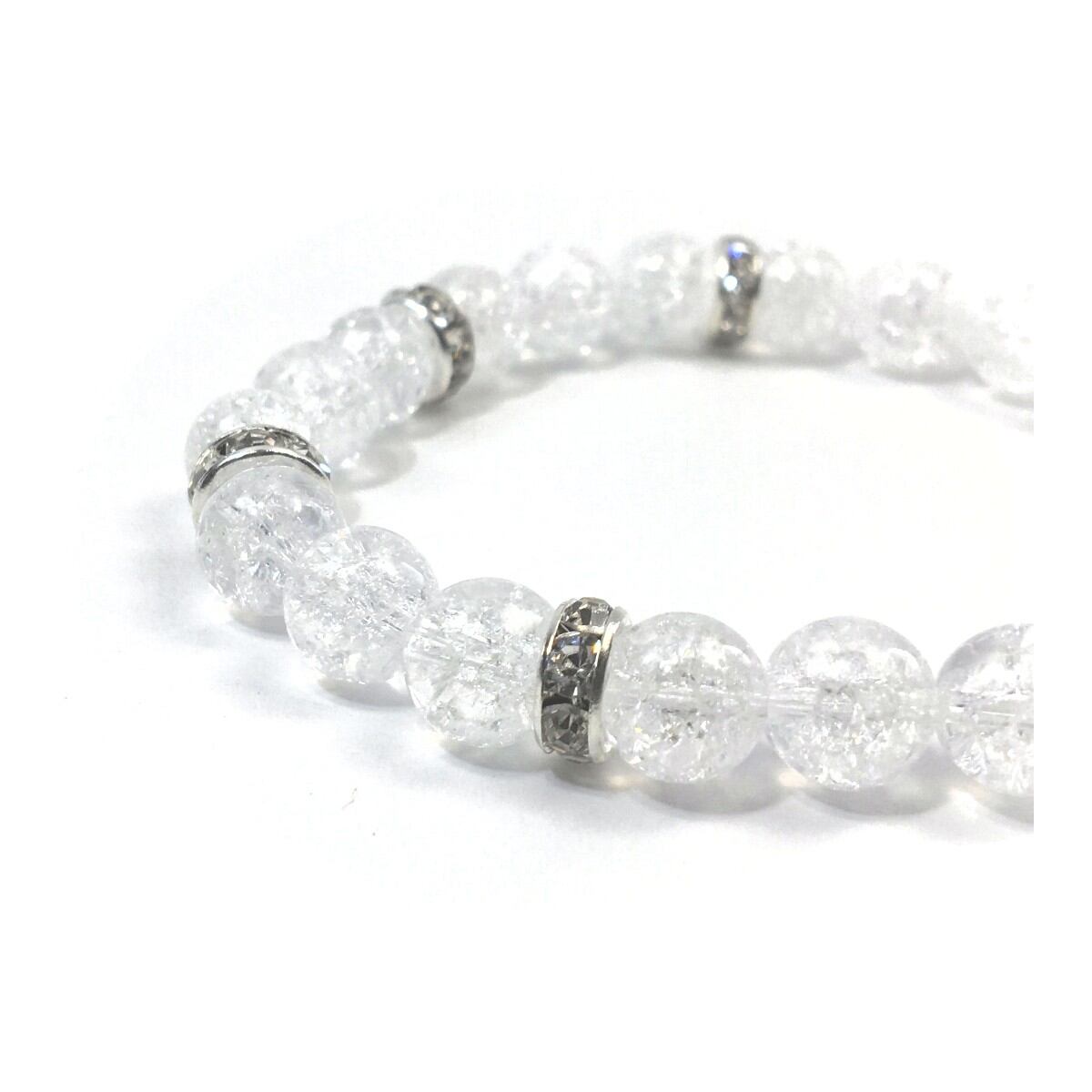 パワーストーン ブレスレット クラック水晶 天然石ブレス (シルバー)レディース 女性 数珠ブレス 開運 プレゼント ギフト
