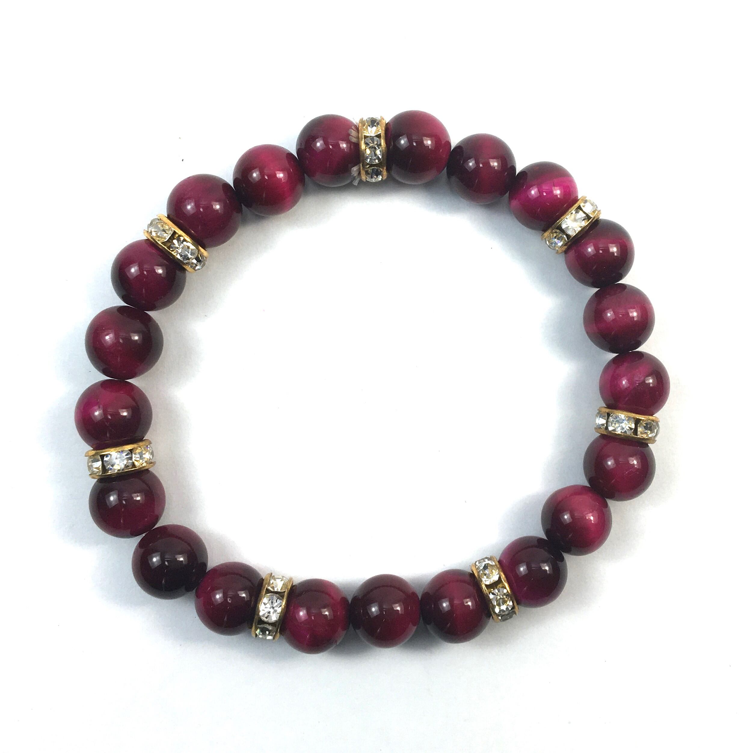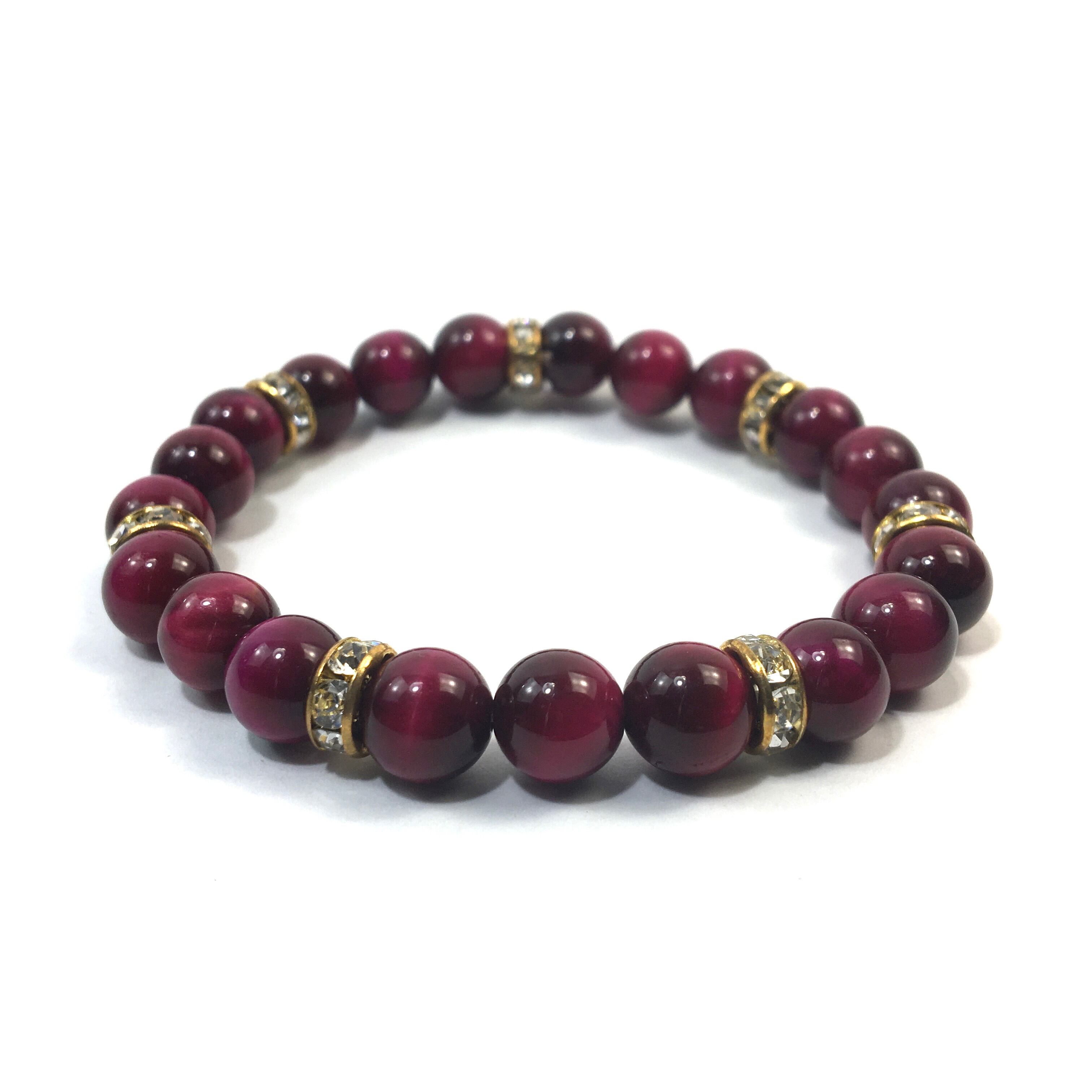 こちらは、8mm玉のピンクタイガーアイを使ったパワーストーンブレスレットです。シンプルなデザインでどんなコーディネートにも合わせやすいデザインに仕上げています。サイズは内周約15cmです。気になる方は是非この機会にどうぞ。