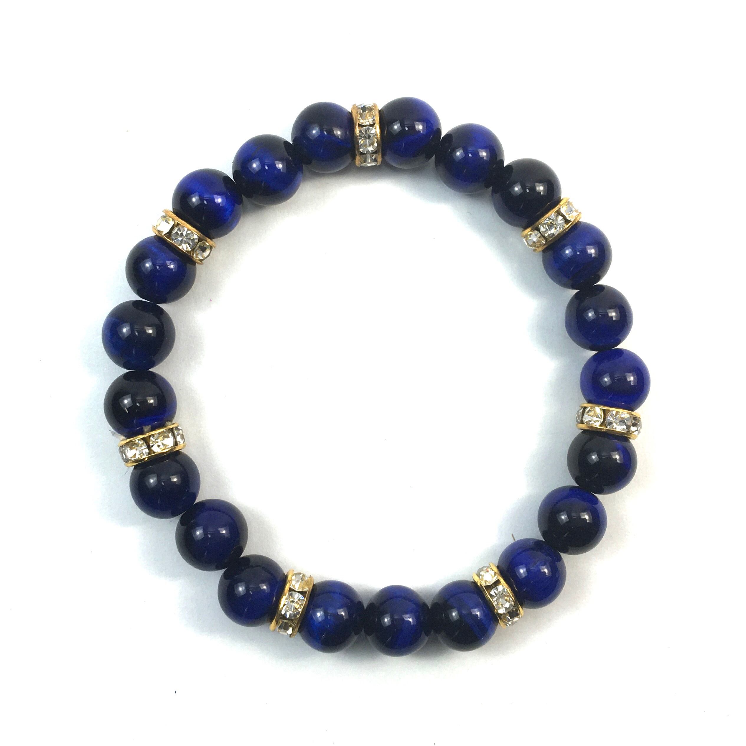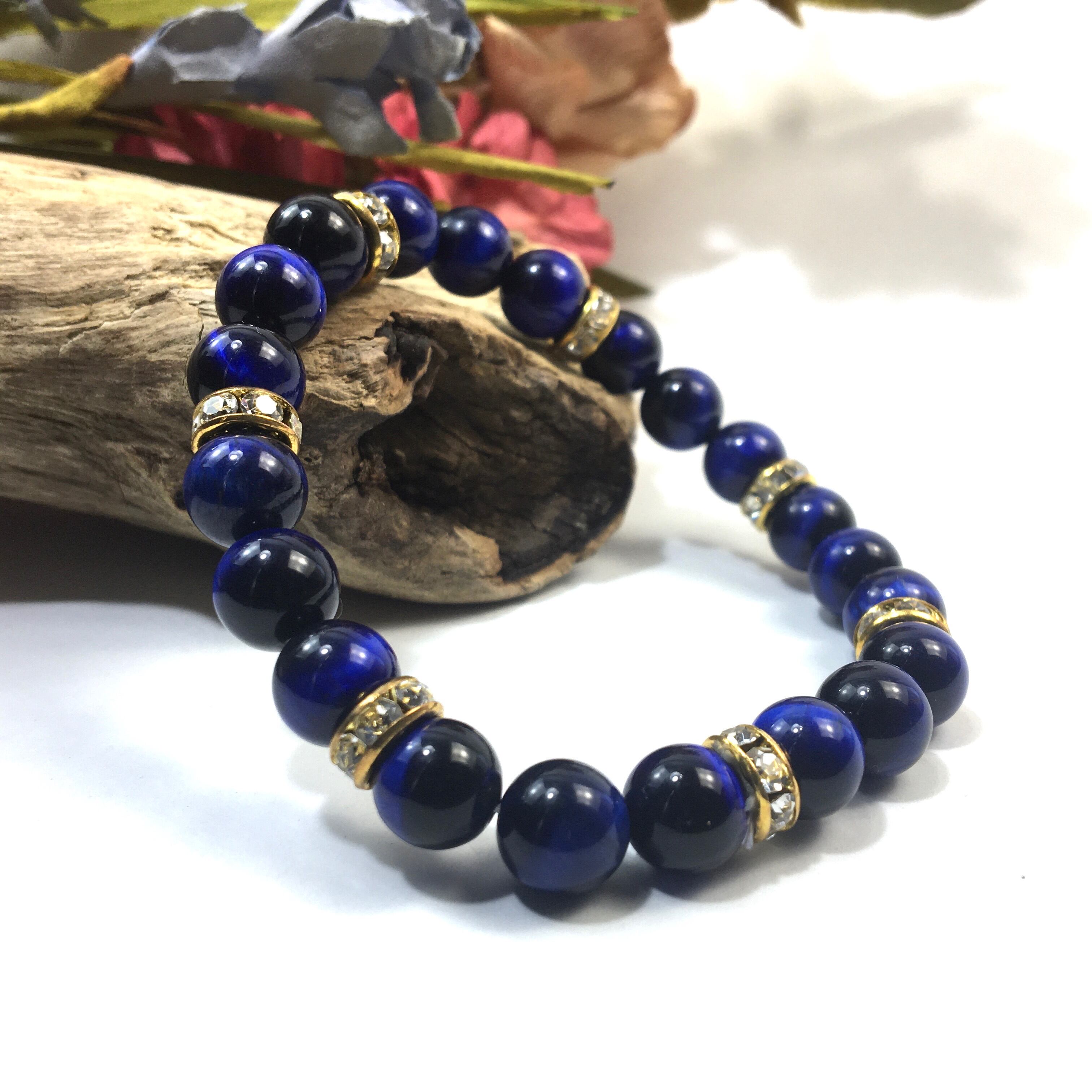 こちらは、8mm玉のブルータイガーアイを使ったパワーストーンブレスレットです。シンプルなデザインでどんなコーディネートにも合わせやすいデザインに仕上げています。サイズは内周約15cmです。気になる方は是非この機会にどうぞ。