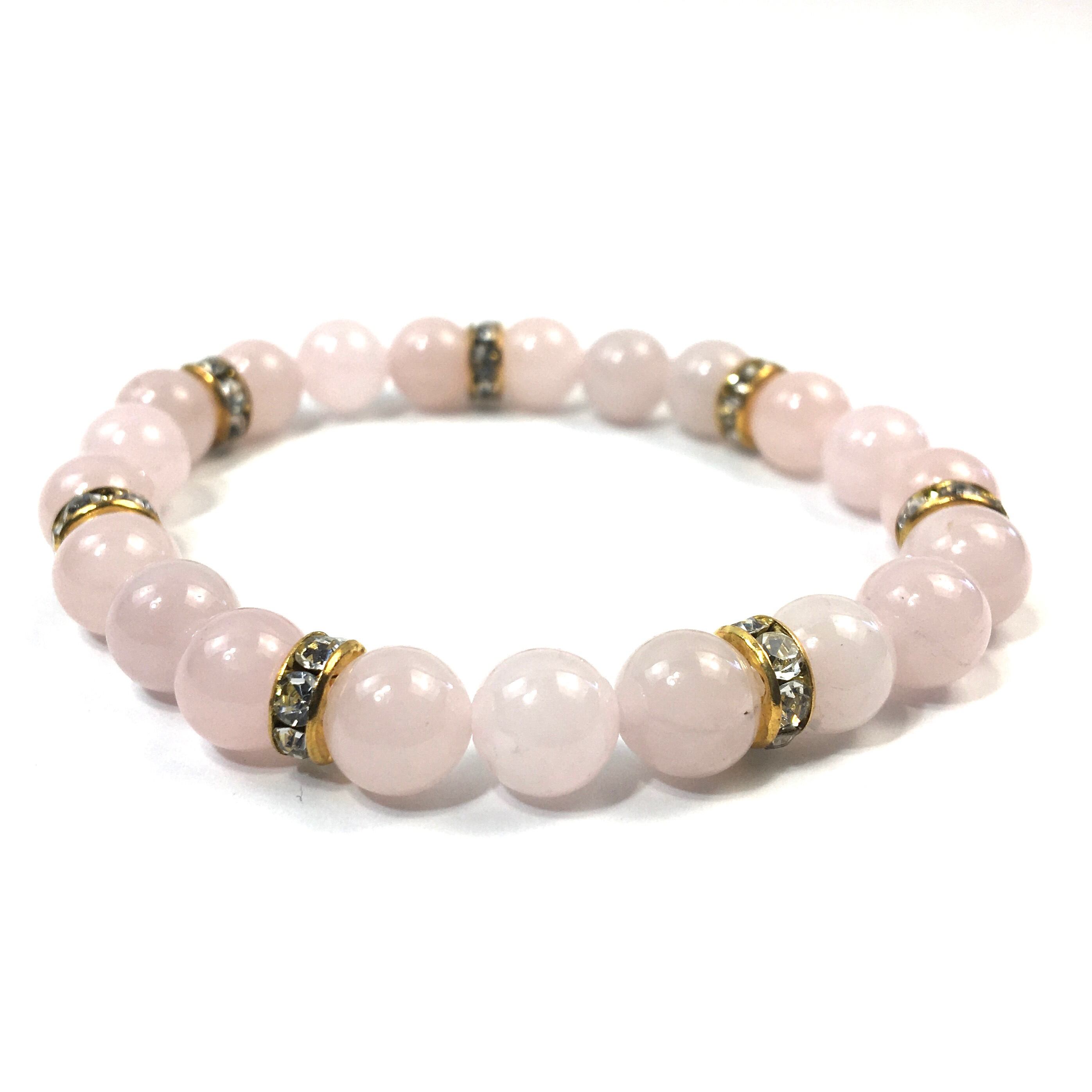 こちらは、8mm玉のローズクォーツを使ったパワーストーンブレスレットです。シンプルなデザインでどんなコーディネートにも合わせやすいデザインに仕上げています。サイズは内周約15cmです。気になる方は是非この機会にどうぞ。