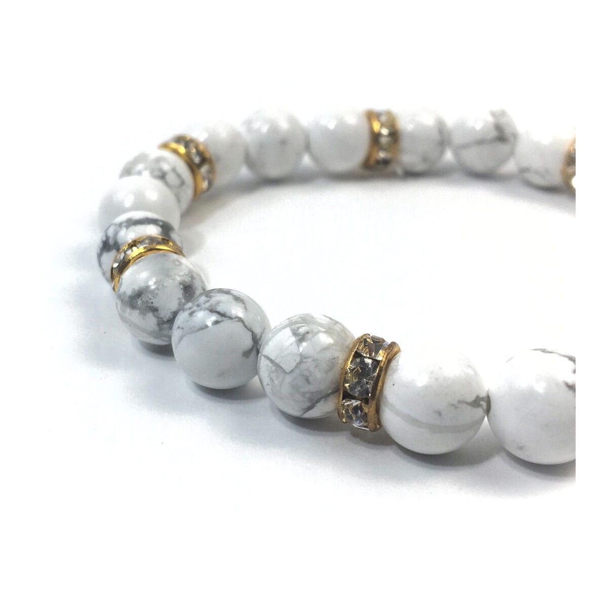 パワーストーン ブレスレット ハウライト 天然石ブレス (ゴールド)レディース 女性 数珠ブレス 開運 プレゼント ギフト