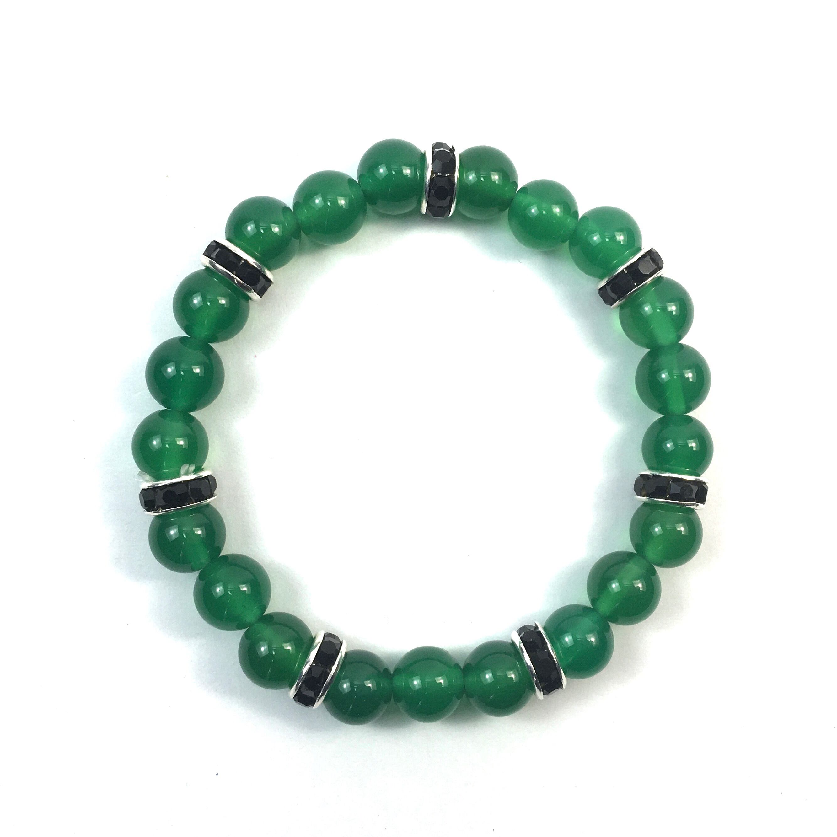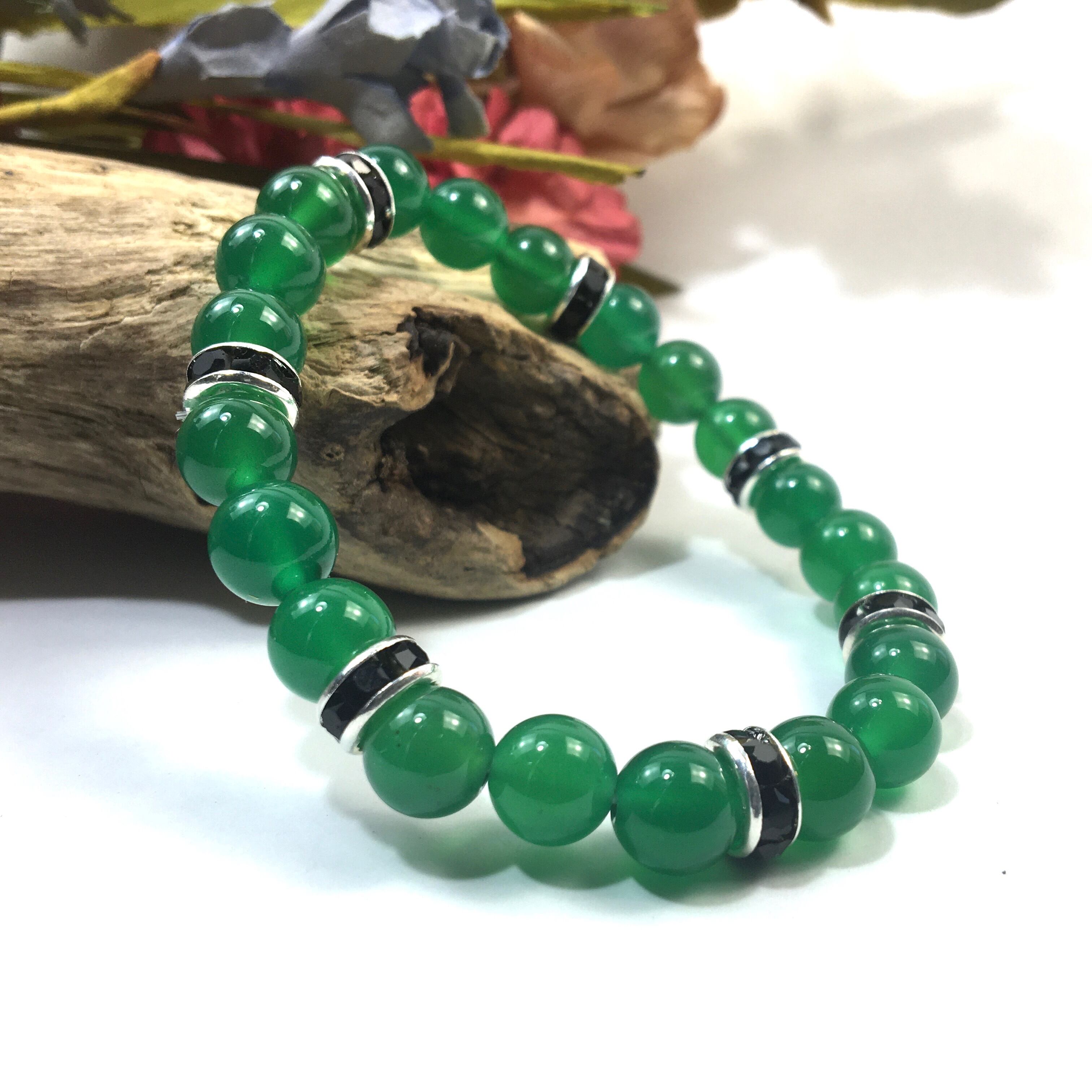 こちらは、8mm玉の緑瑪瑙を使ったパワーストーンブレスレットです。シンプルなデザインでどんなコーディネートにも合わせやすいデザインに仕上げています。サイズは内周約15cmです。気になる方は是非この機会にどうぞ。