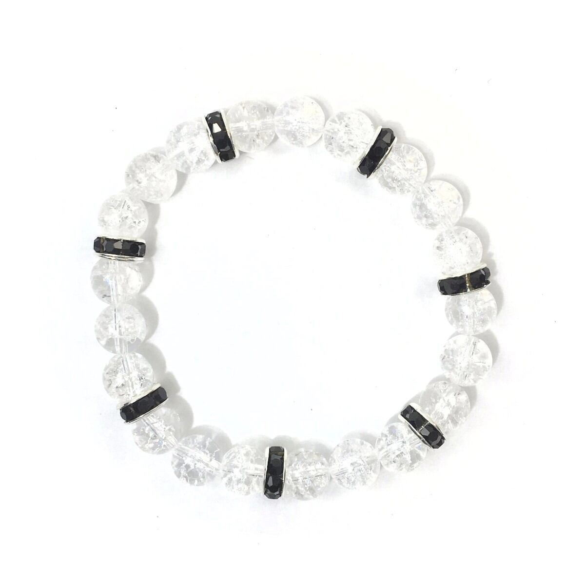 パワーストーン ブレスレット クラック水晶 天然石ブレス (ブラック)レディース 女性 数珠ブレス 開運 プレゼント ギフト