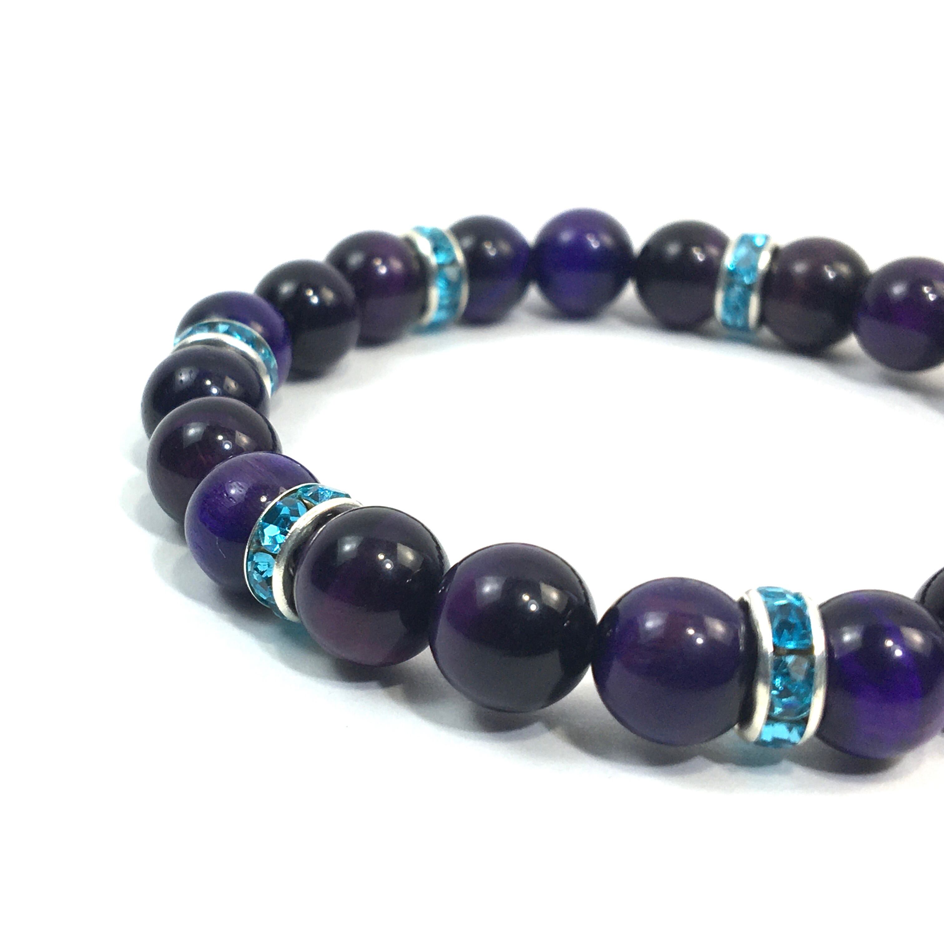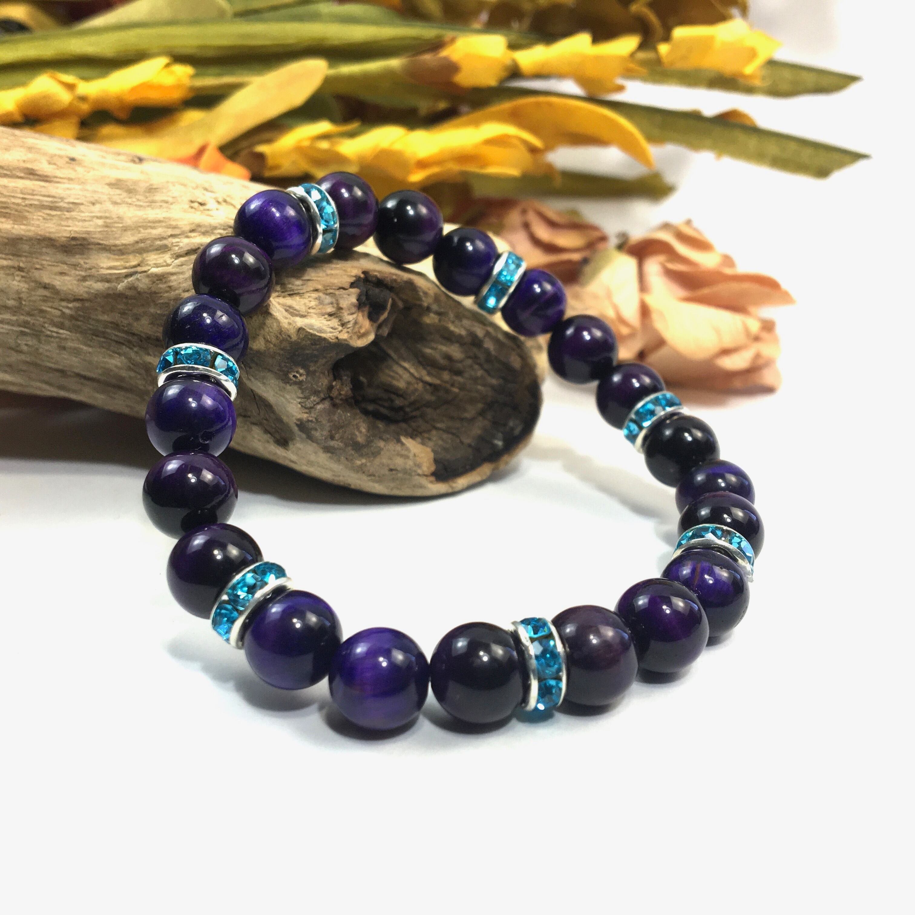パワーストーン ブレスレット パープルタイガーアイ (ライトブルー)レディース 女性 数珠ブレス 開運 プレゼント ギフト