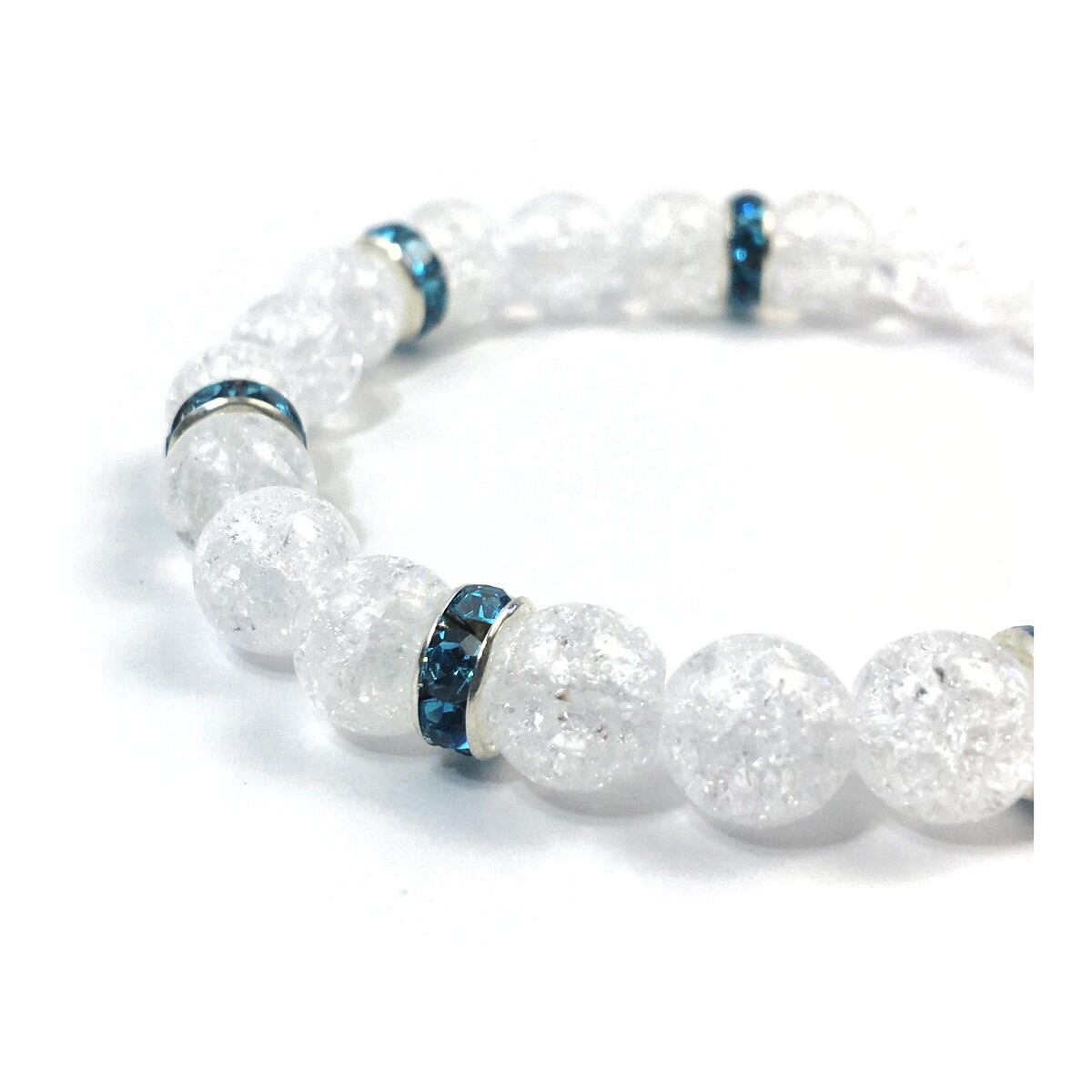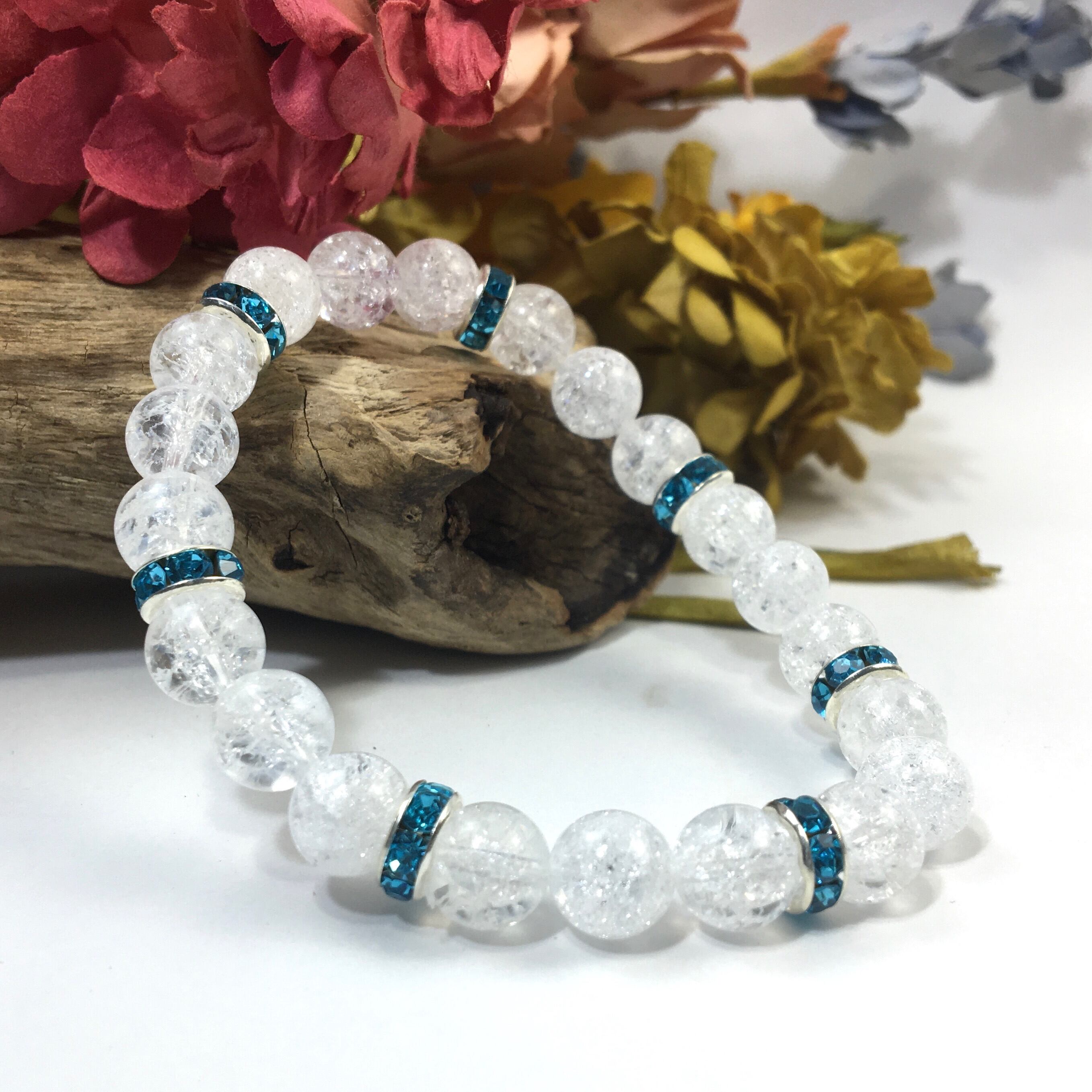 パワーストーン ブレスレット クラック水晶 天然石ブレス (ライトブルー)レディース 女性 数珠ブレス 開運 プレゼント ギフト