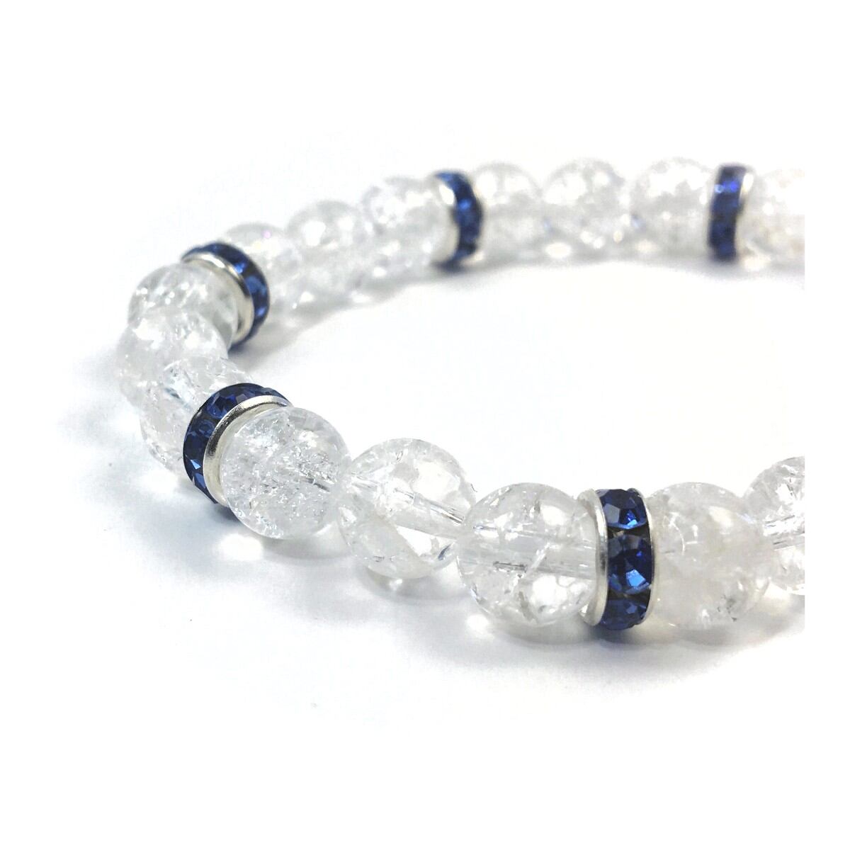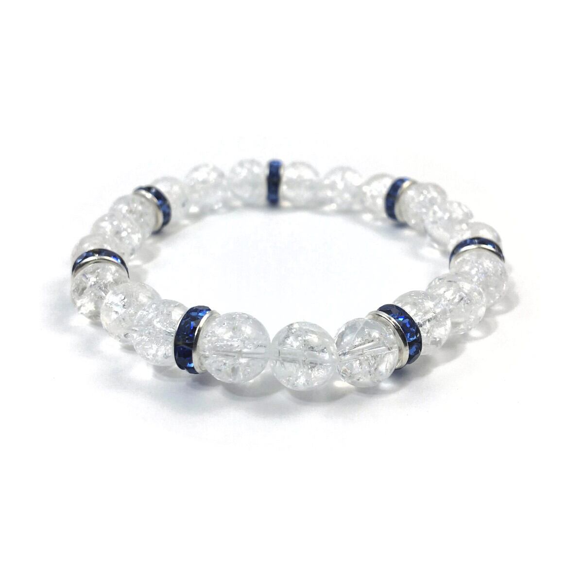 パワーストーン ブレスレット クラック水晶 天然石ブレス (ブルー)レディース 女性 数珠ブレス 開運 プレゼント ギフト