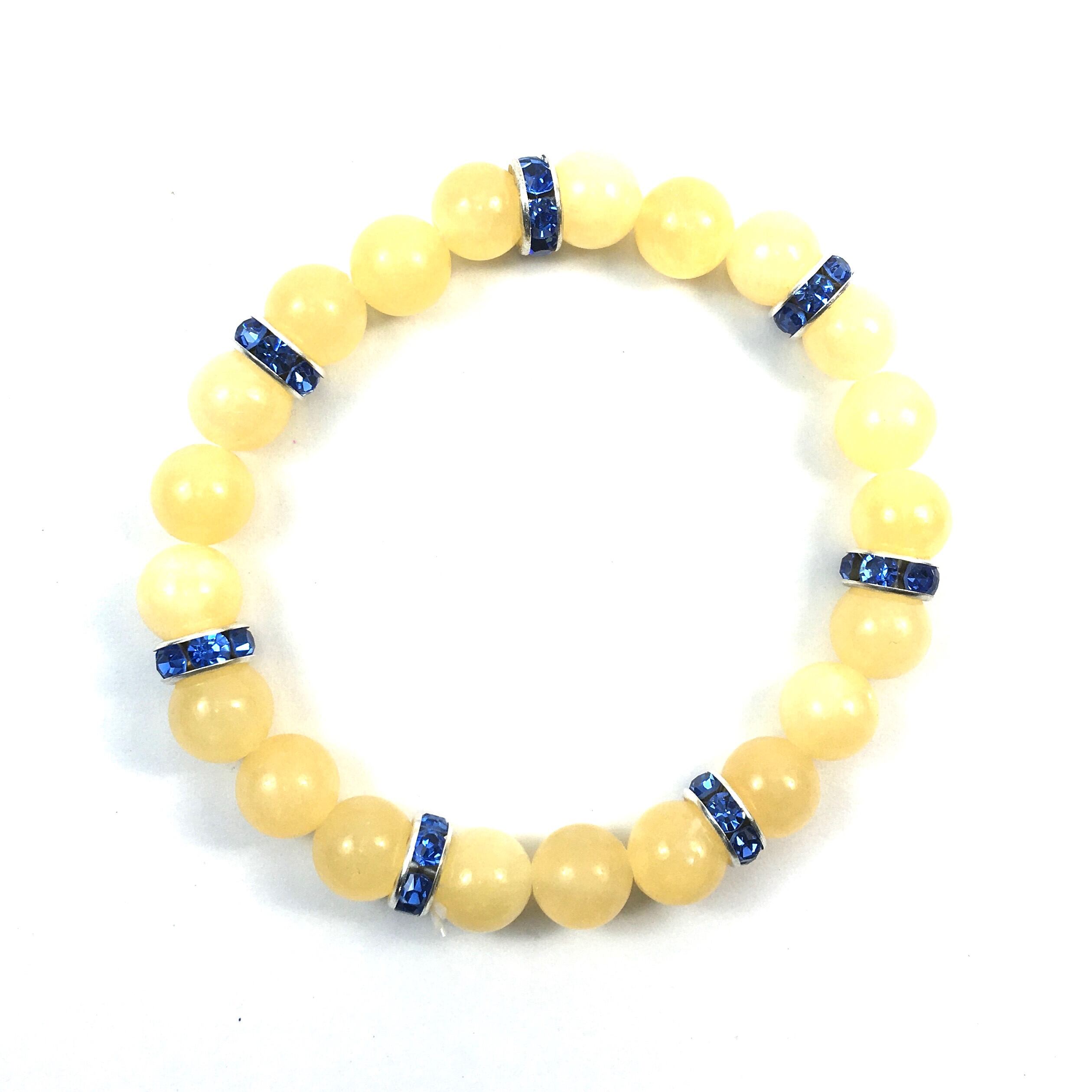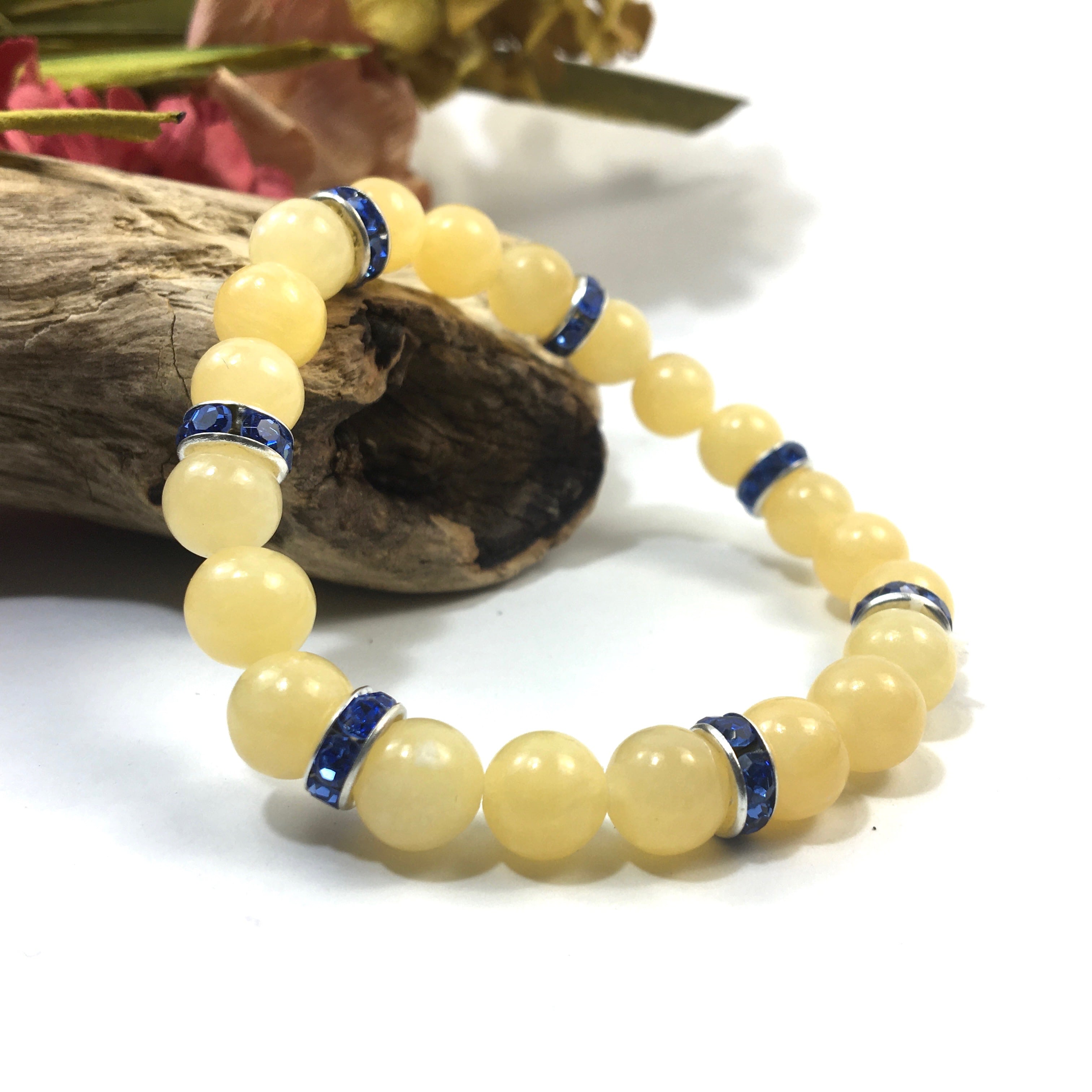 こちらは、8mm玉のアラゴナイトを使ったパワーストーンブレスレットです。シンプルなデザインでどんなコーディネートにも合わせやすいデザインに仕上げています。サイズは内周約15cmです。気になる方は是非この機会にどうぞ。
