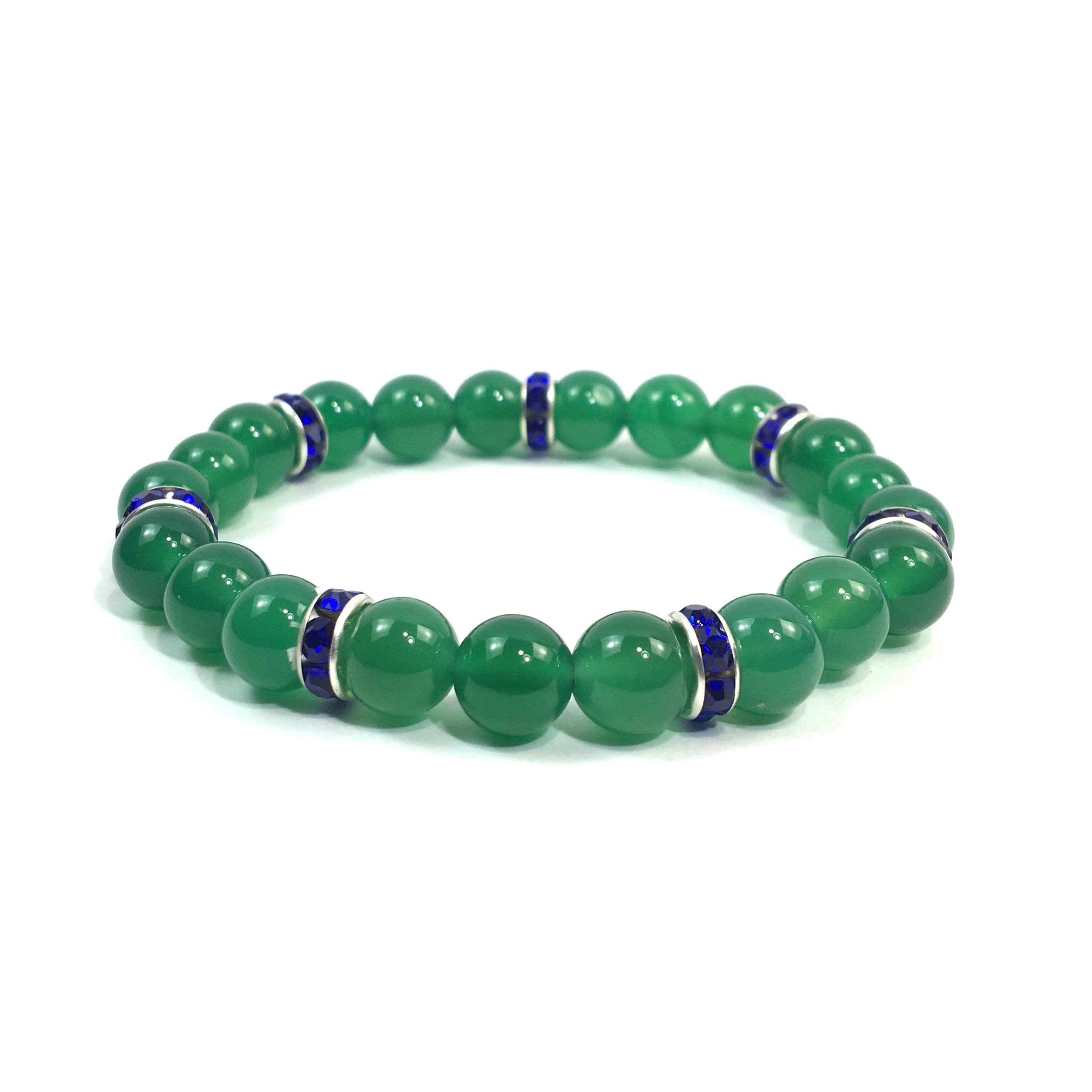 緑瑪瑙は、幸運・健康運の意味を持つパワーストーンと言われている石。様々なパワーを持つ石とされ、知性幸運をもたらすと伝承されており、特に新しいことを始めようとしているとき、正しい判断で幸運へと導くといわれています。