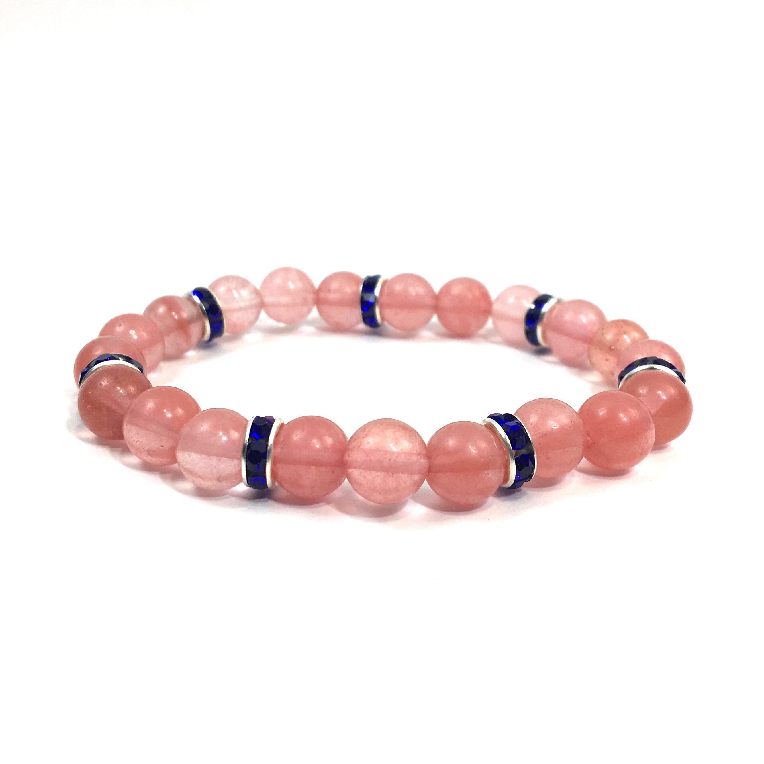 こちらは、8mm玉のチェリークォーツを使ったパワーストーンブレスレットです。シンプルなデザインでどんなコーディネートにも合わせやすいデザインに仕上げています。サイズは内周約15cmです。気になる方は是非この機会にどうぞ。