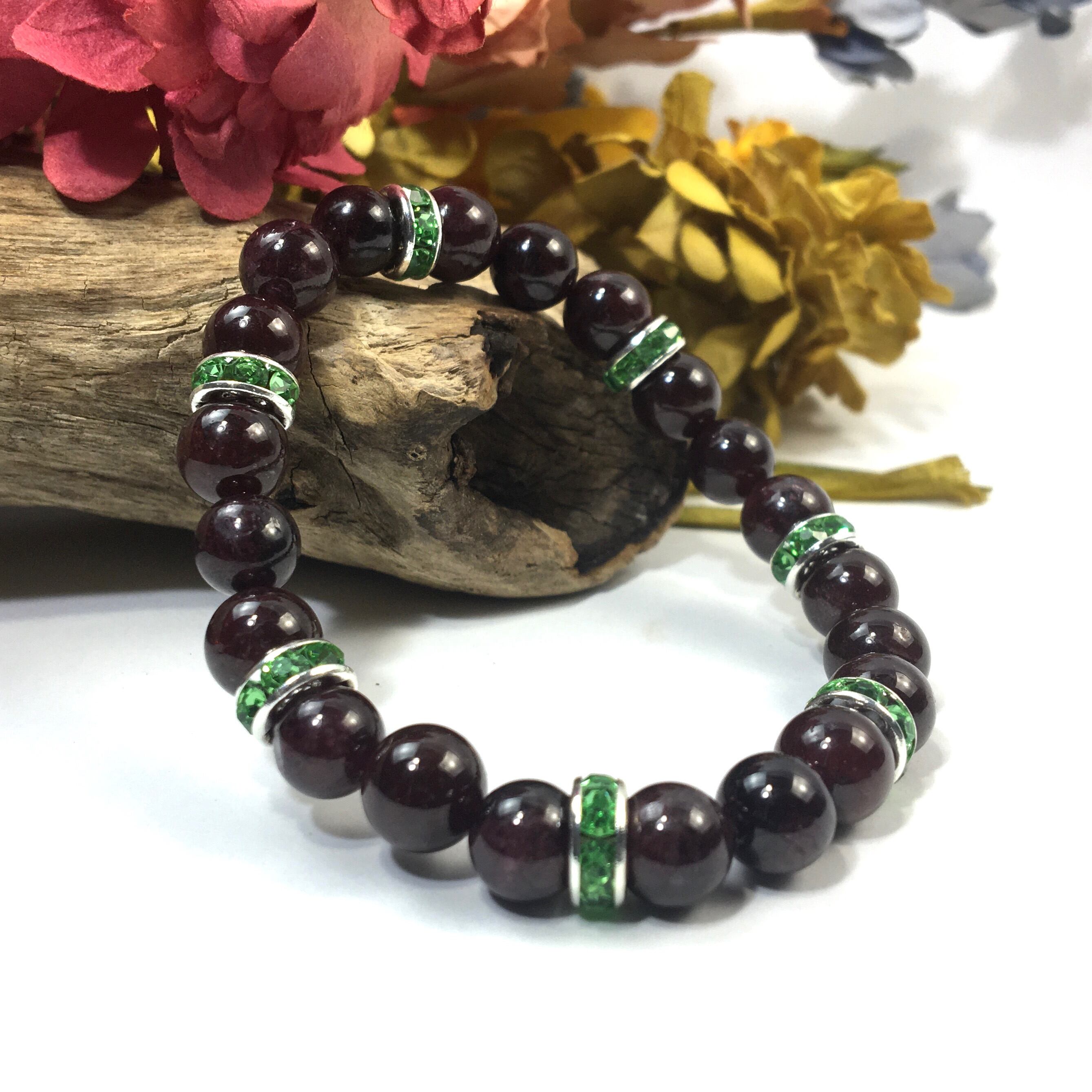 パワーストーン ブレスレット ガーネット 天然石ブレス (グリーン)レディース 女性 数珠ブレス 開運 プレゼント ギフト