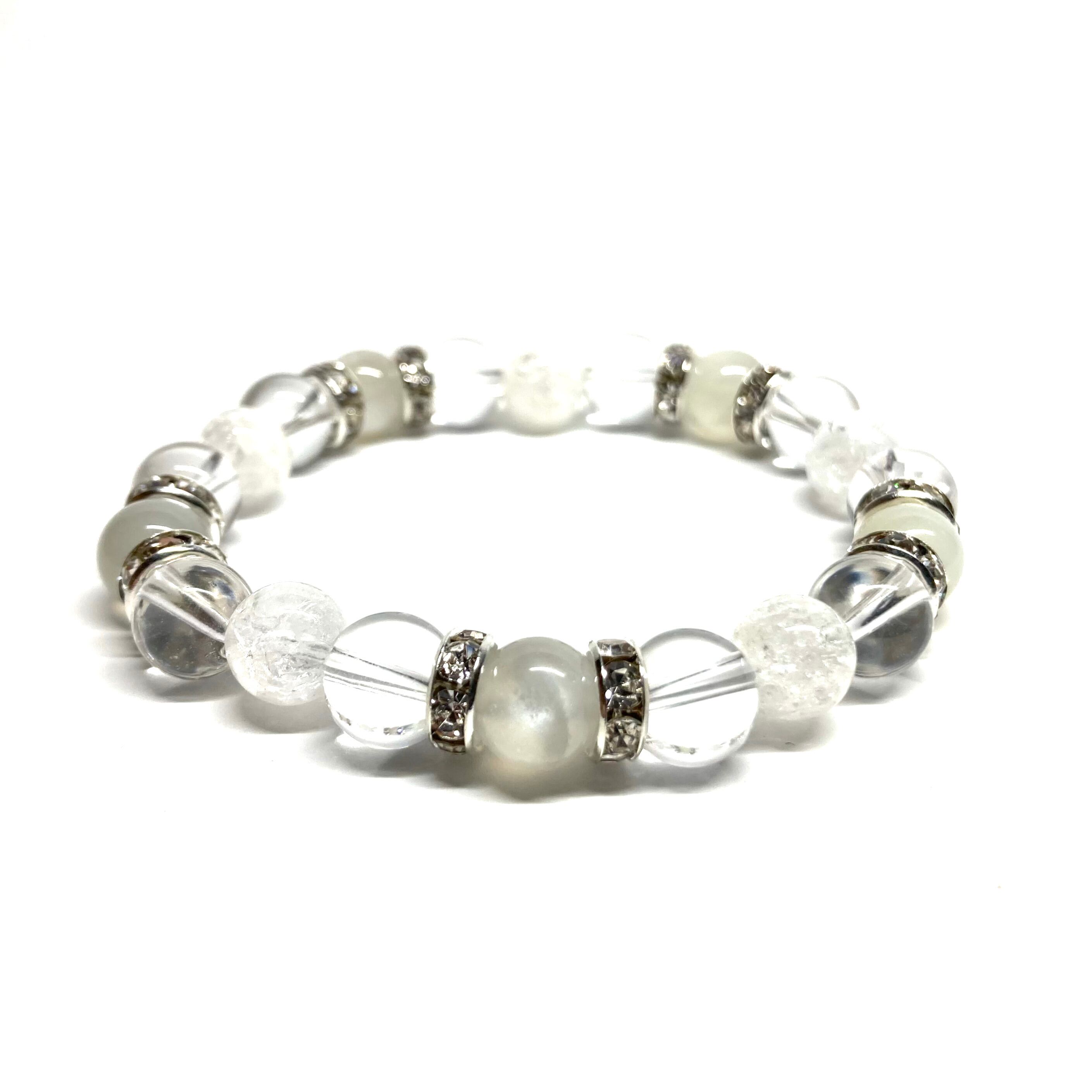 パワーストーン ブレスレット ムーンストーン&水晶&クラック水晶 天然石ブレスレット (シルバー)8mm レディース 女性 数珠ブレス 開運 プレゼント ギフト