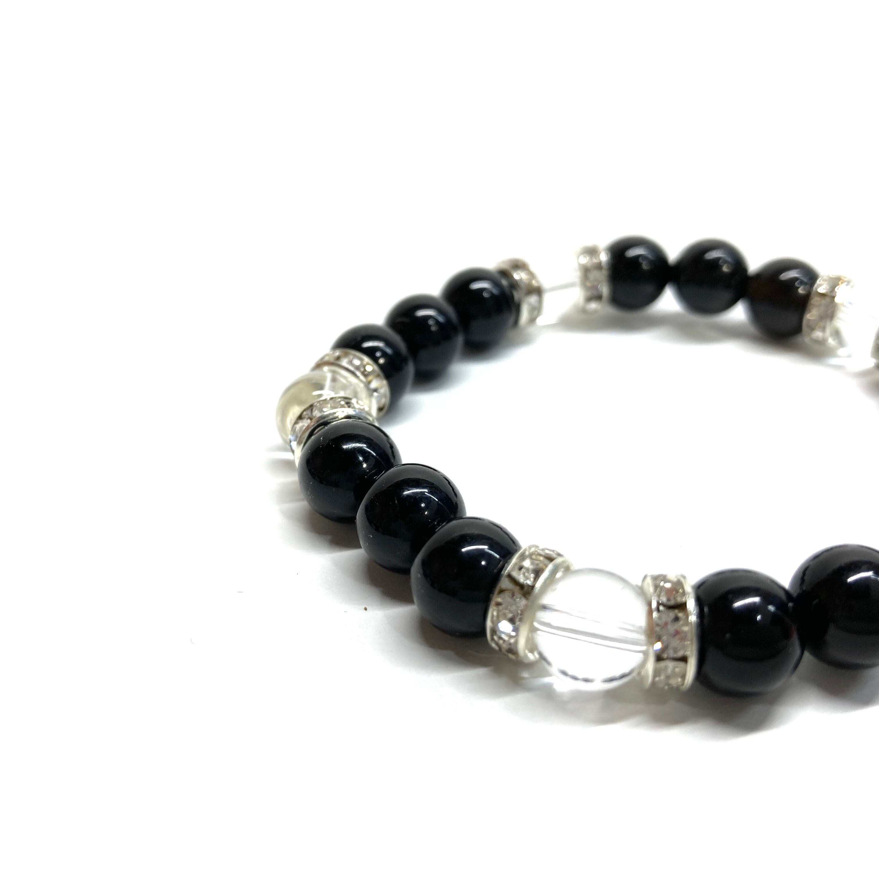 モリオン&水晶 パワーストーン ブレスレット 天然石 (シルバー)8mm レディース 女性 数珠ブレス 開運 プレゼント ギフト