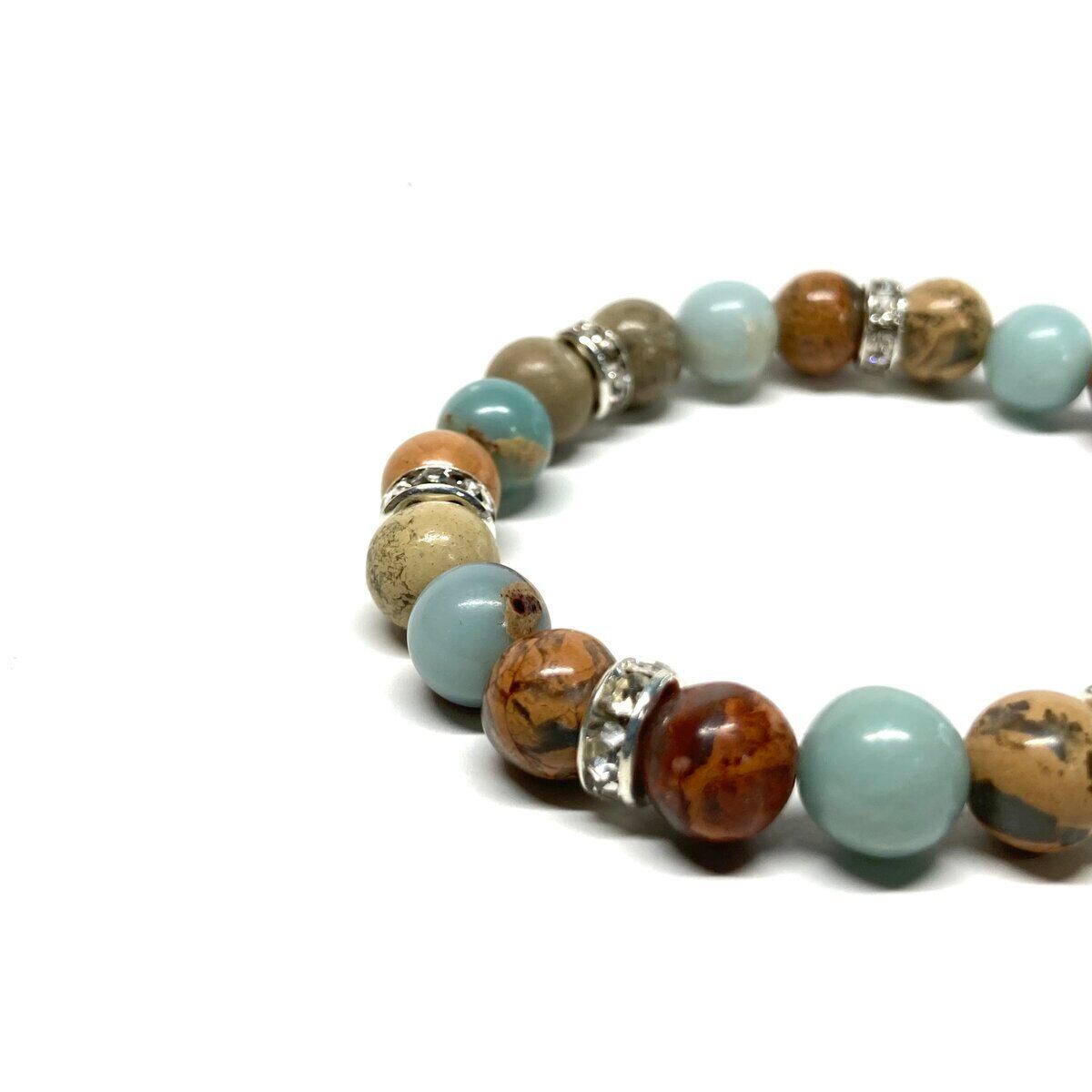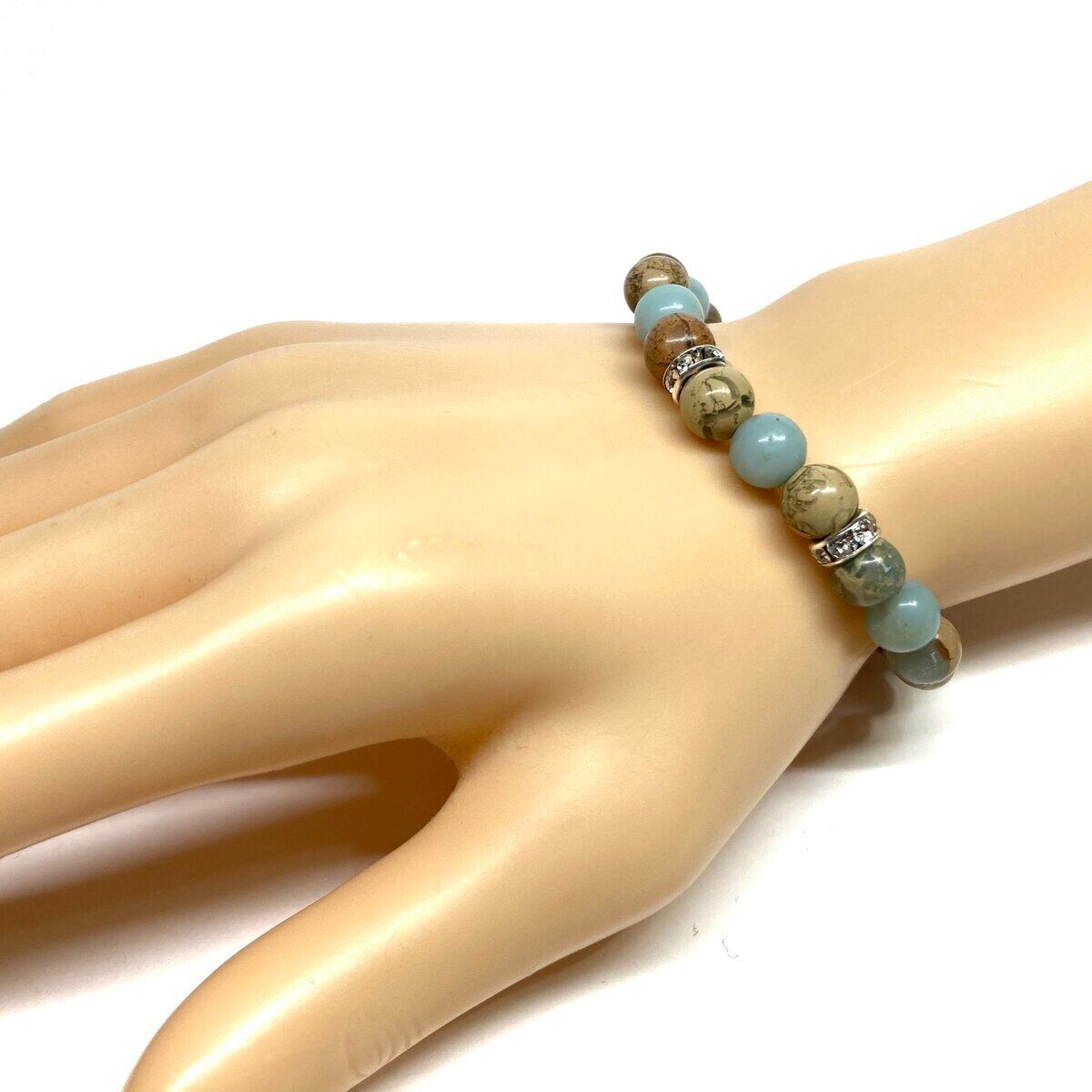インプレッションストーン パワーストーン ブレスレット 天然石ブレス (シルバー)8mm レディース 女性 数珠ブレス 開運 プレゼント ギフト