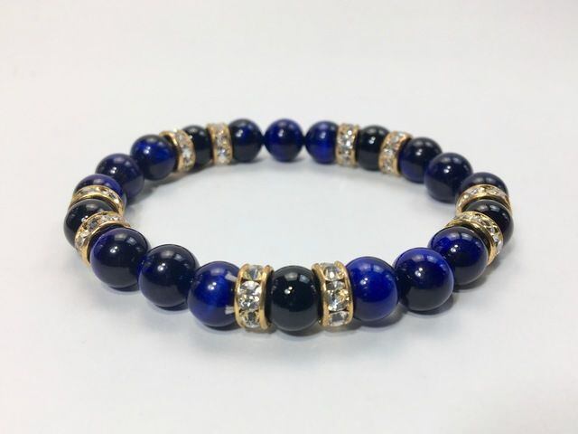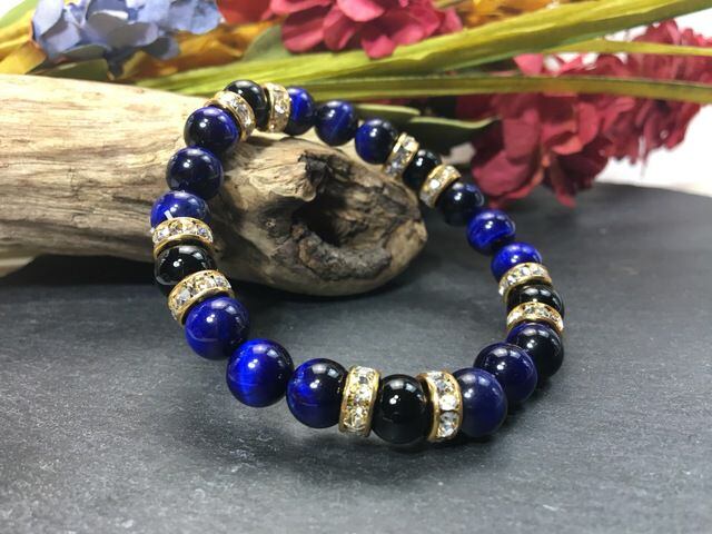 パワーストーン ブレスレット ブルータイガーアイ&オニキス 天然石 8mm(ゴールド)レディース 女性 数珠ブレス 開運 プレゼント ギフト