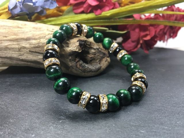 パワーストーン ブレスレット グリーンタイガーアイ&オニキス 8mm(ゴールド)レディース 女性 数珠ブレス 開運 プレゼント ギフト