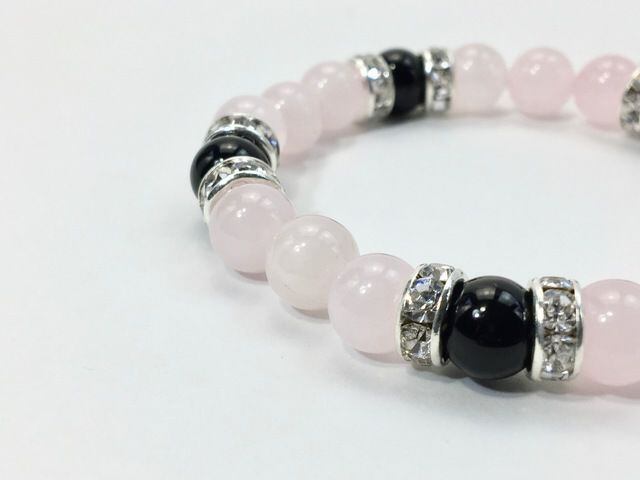 パワーストーン ブレスレット ローズクォーツ&オニキス 8mm(シルバー)レディース 女性 数珠ブレス 開運 プレゼント ギフト