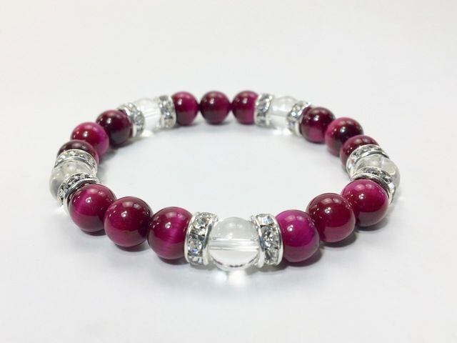 パワーストーン ブレスレット ピンクタイガーアイ&水晶 天然石 8mm(シルバー)レディース 女性 数珠ブレス 開運 プレゼント ギフト