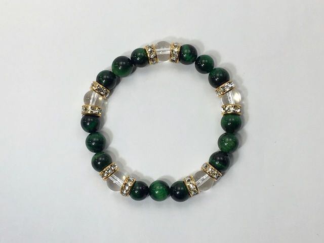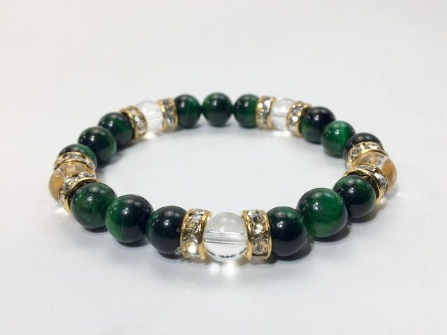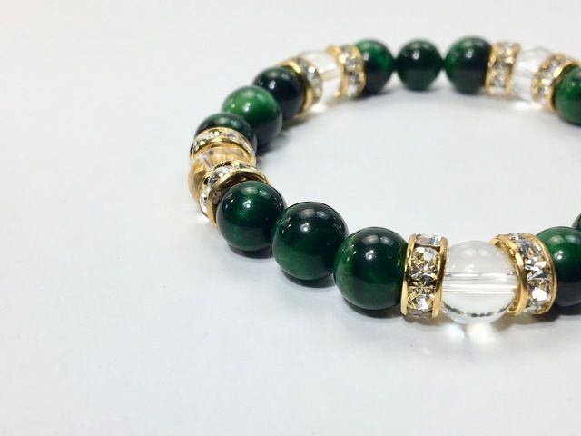 パワーストーン ブレスレット グリーンタイガーアイ&水晶 天然石 8mm(ゴールド)レディース 女性 数珠ブレス 開運 プレゼント ギフト