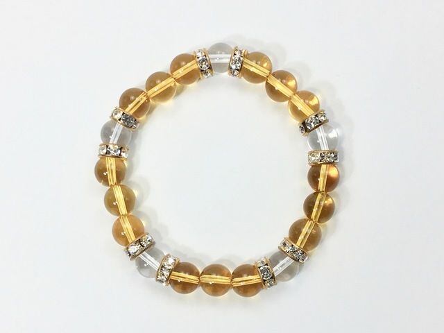 パワーストーン ブレスレット シトリン&水晶 天然石ブレス 8mm(ゴールド)レディース 女性 数珠ブレス 開運 プレゼント ギフト