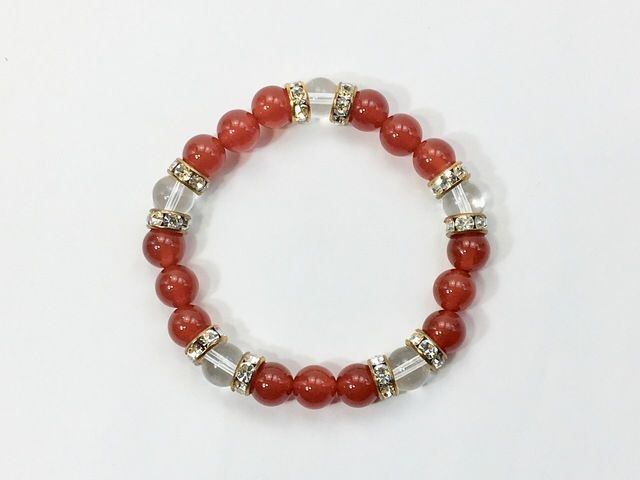 パワーストーン ブレスレット 赤瑪瑙 &水晶 天然石ブレスレット 8mm(ゴールド)レディース 女性 数珠ブレス 開運 プレゼント ギフト