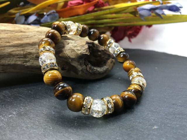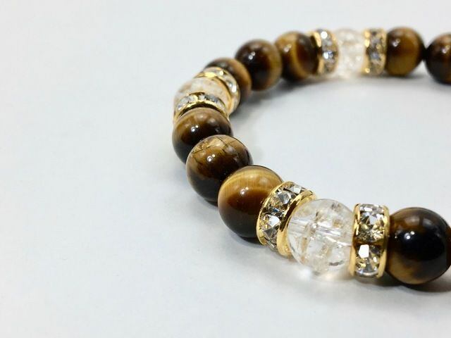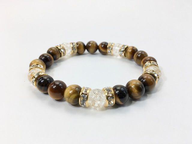 パワーストーン ブレスレット タイガーアイ&クラック水晶 8mm(ゴールド)レディース 女性 数珠ブレス 開運 プレゼント ギフト