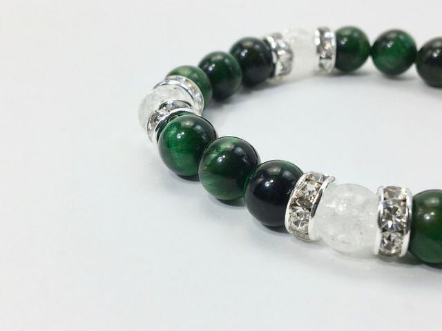 パワーストーン ブレスレット グリーンタイガーアイ&クラック水晶 8mm(シルバー)レディース 女性 数珠ブレス 開運 プレゼント ギフト
