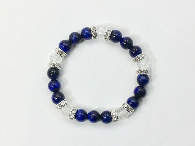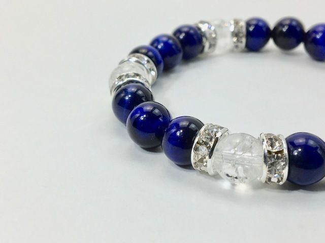 こちらは、8mm玉のブルータイガーアイとクラック水晶を使ったパワーストーンブレスレットです。シンプルなデザインでどんなコーディネートにも合わせやすいデザインに仕上げています。サイズは内周約15cmです。気になる方は是非この機会にどうぞ。