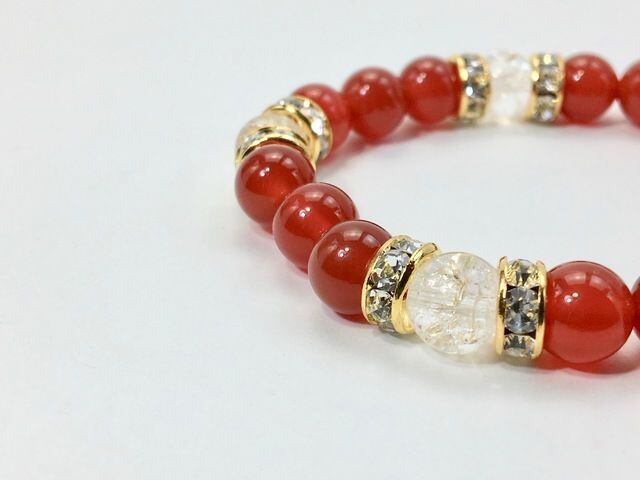 パワーストーン ブレスレット 赤瑪瑙&クラック水晶 天然石ブレス 8mm(ゴールド)レディース 女性 数珠ブレス 開運 プレゼント ギフト