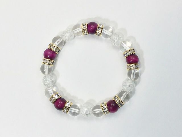 パワーストーン ブレスレット ピンクタイガーアイ&水晶&クラック水晶 (ゴールド)レディース 女性 数珠ブレス 開運 プレゼント ギフト