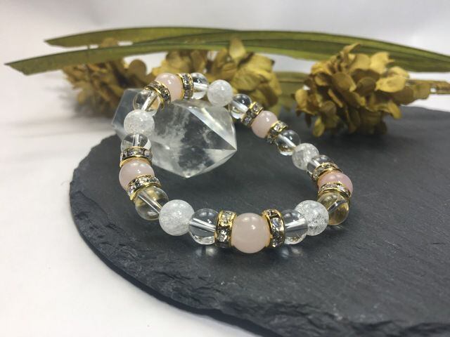 パワーストーン ブレスレット ローズクォーツ&水晶&クラック水晶 (ゴールド)レディース 女性 数珠ブレス 開運 プレゼント ギフト