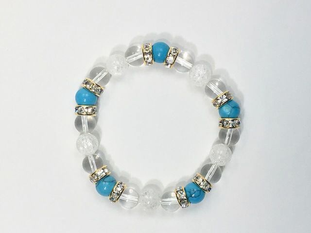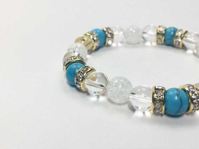 パワーストーン ブレスレット ターコイズ&水晶&クラック水晶 (ゴールド)レディース 女性 数珠ブレス 開運 プレゼント ギフト
