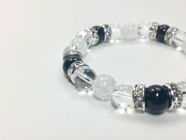 パワーストーン ブレスレット オニキス&水晶&クラック水晶 (シルバー)レディース 女性 数珠ブレス 開運 プレゼント ギフト