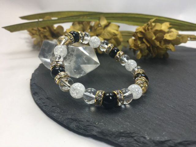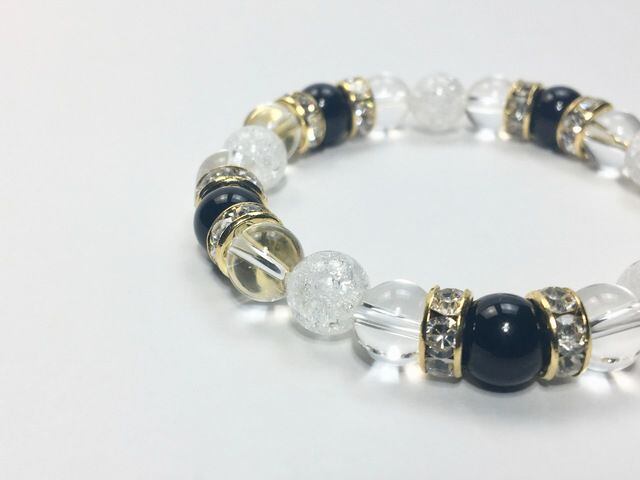 パワーストーン ブレスレット オニキス&水晶&クラック水晶 (ゴールド)レディース 女性 数珠ブレス 開運 プレゼント ギフト