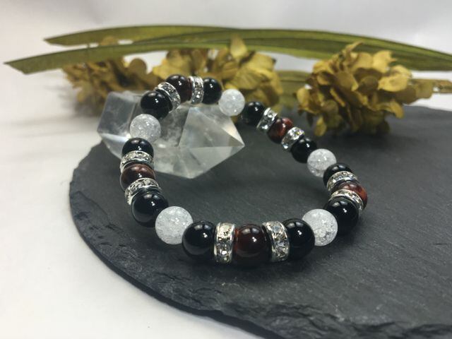 パワーストーン ブレスレット レッドタイガーアイ&オニキス&クラック水晶 (シルバー)レディース 女性 数珠ブレス 開運 プレゼント ギフト