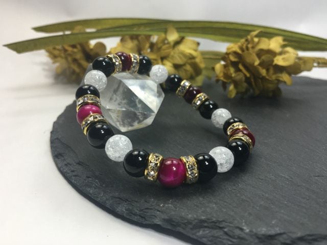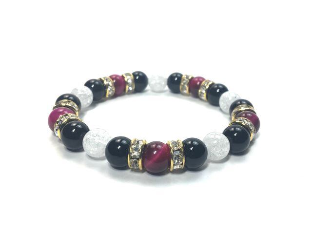 パワーストーン ブレスレット ピンクタイガーアイ&オニキス&クラック水晶 (ゴールド)レディース 女性 数珠ブレス 開運 プレゼント ギフト