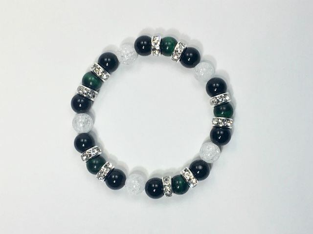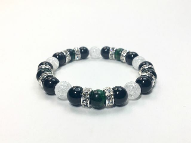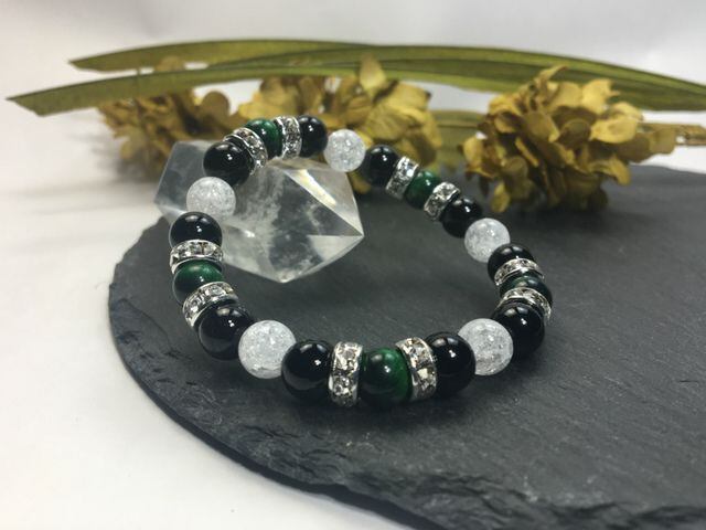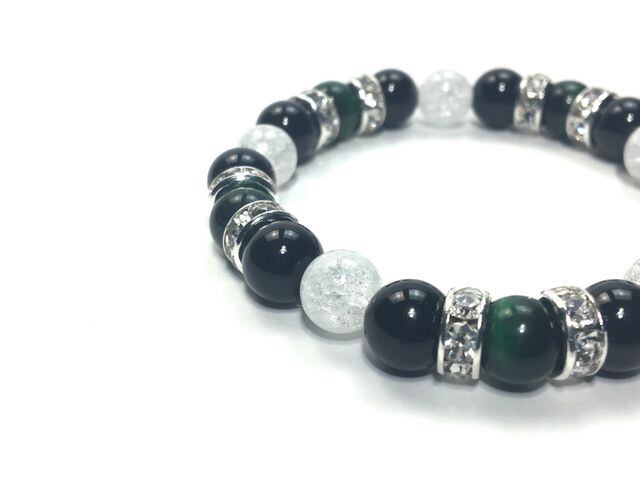 パワーストーン ブレスレット グリーンタイガーアイ&オニキス&クラック水晶 (シルバー)レディース 女性 数珠ブレス 開運 プレゼント ギフト