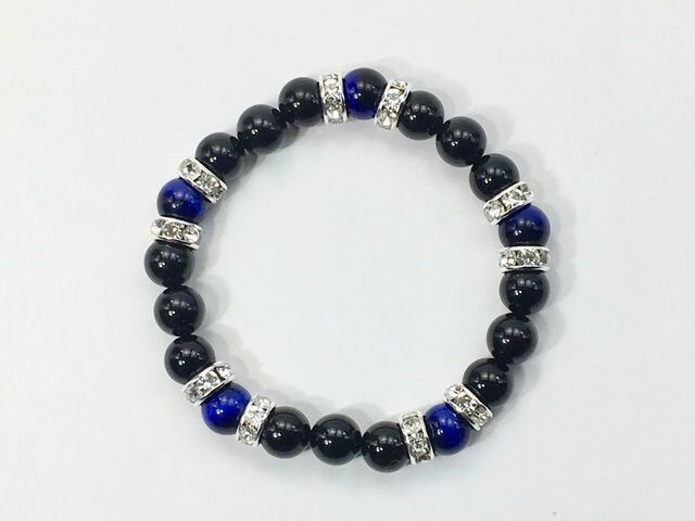 こちらは、8mm玉のオニキスとブルータイガーアイを使ったパワーストーンブレスレットです。シンプルなデザインでどんなコーディネートにも合わせやすいデザインに仕上げています。サイズは内周約15cmです。気になる方は是非この機会にどうぞ。