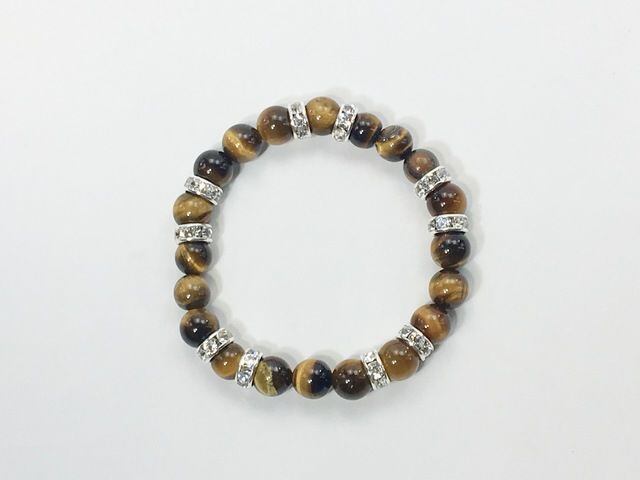 こちらは、8mm玉のタイガーアイを使ったパワーストーンブレスレットです。シンプルなデザインでどんなコーディネートにも合わせやすいデザインに仕上げています。サイズは内周約15cmです。気になる方は是非この機会にどうぞ。
